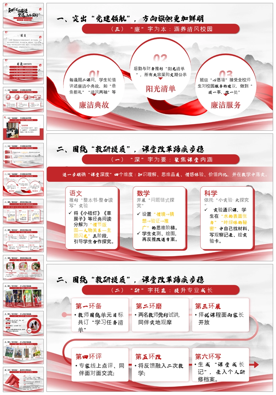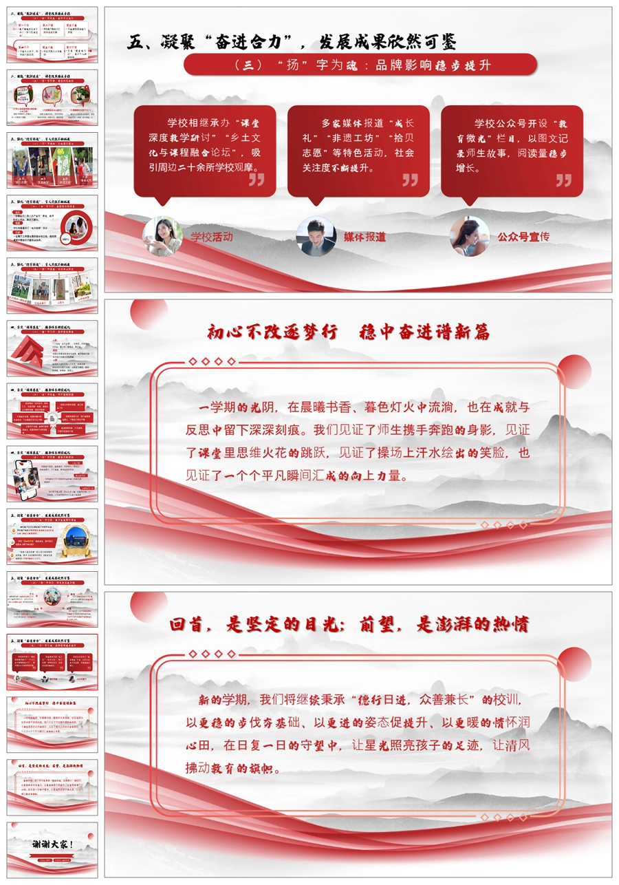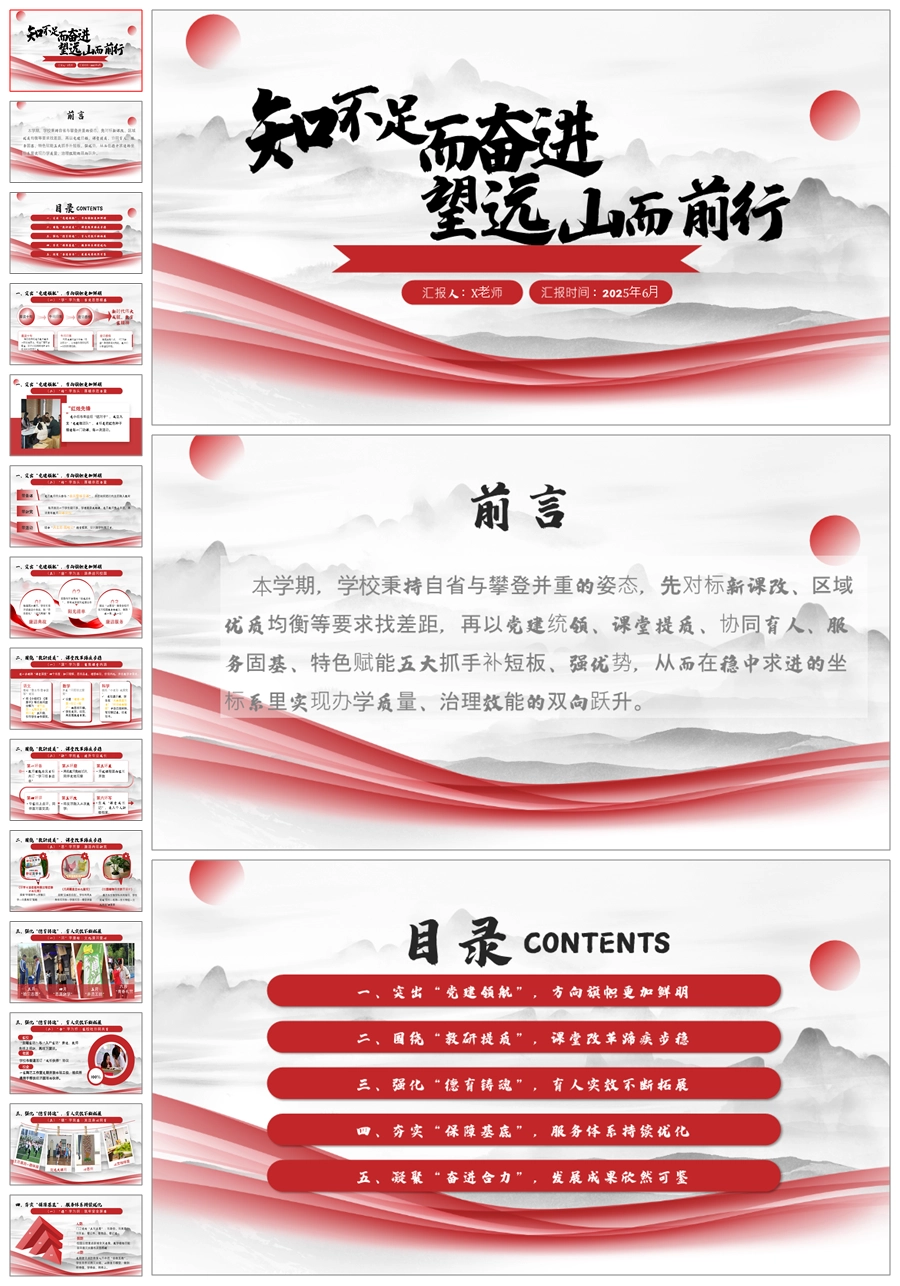 学校整体工作总结-知不足而奋进ppt课件+发言稿