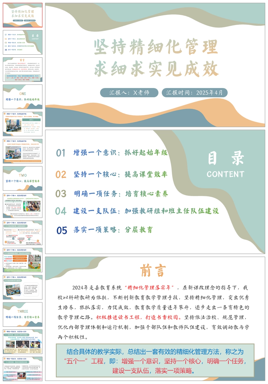 教学管理经验总结《坚持精细化管理 求细求实见成效》ppt课件+发言稿