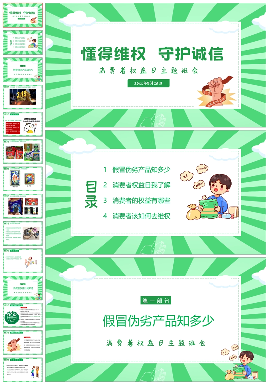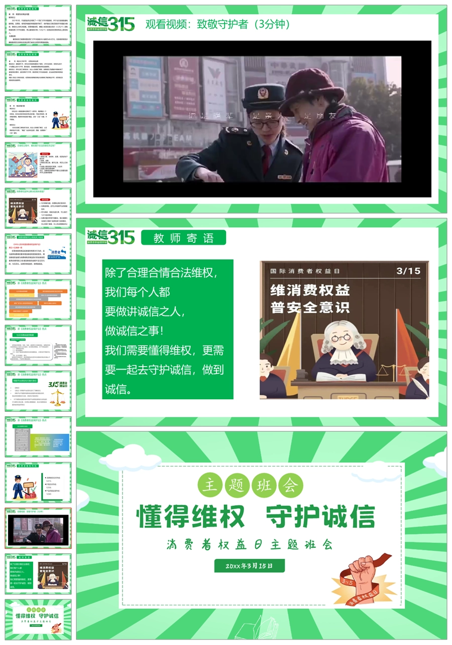 【5745】节日班会 0315消费者权益日主题班会《懂得维权守护诚信》ppt课件+视频