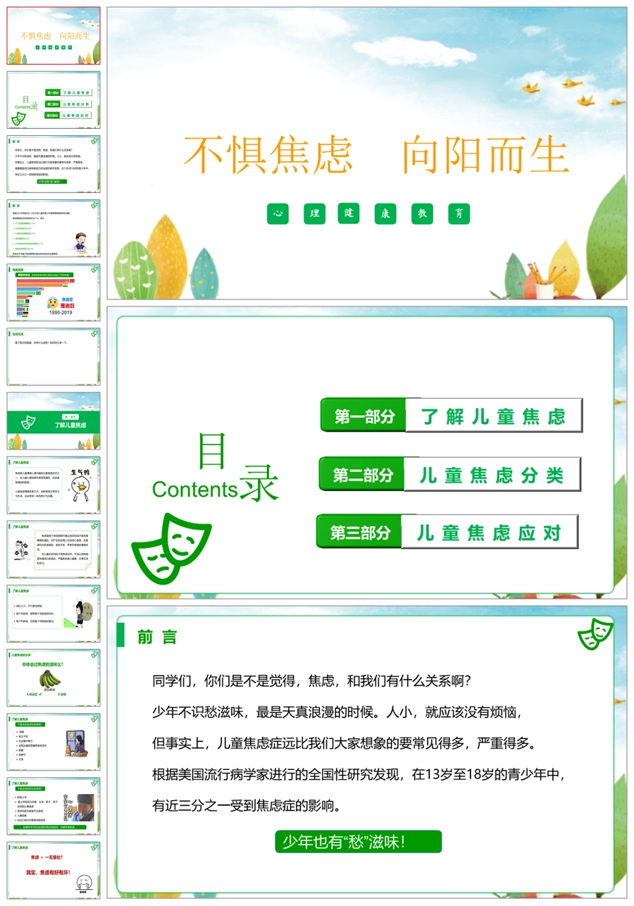 【5749】健康教育 焦虑主题《不惧焦虑向阳而生》ppt课件+视频
