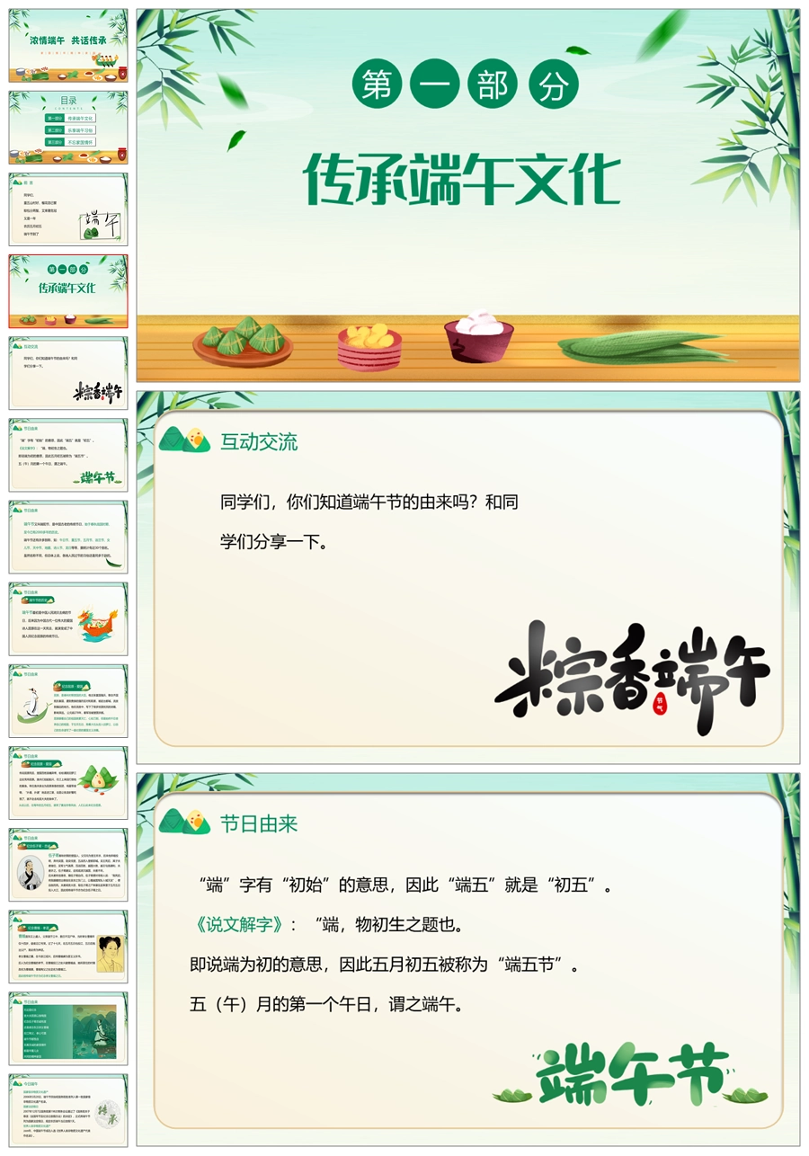 【5767】节日班会 0610端午节班会《浓情端午共话传承》ppt课件+视频