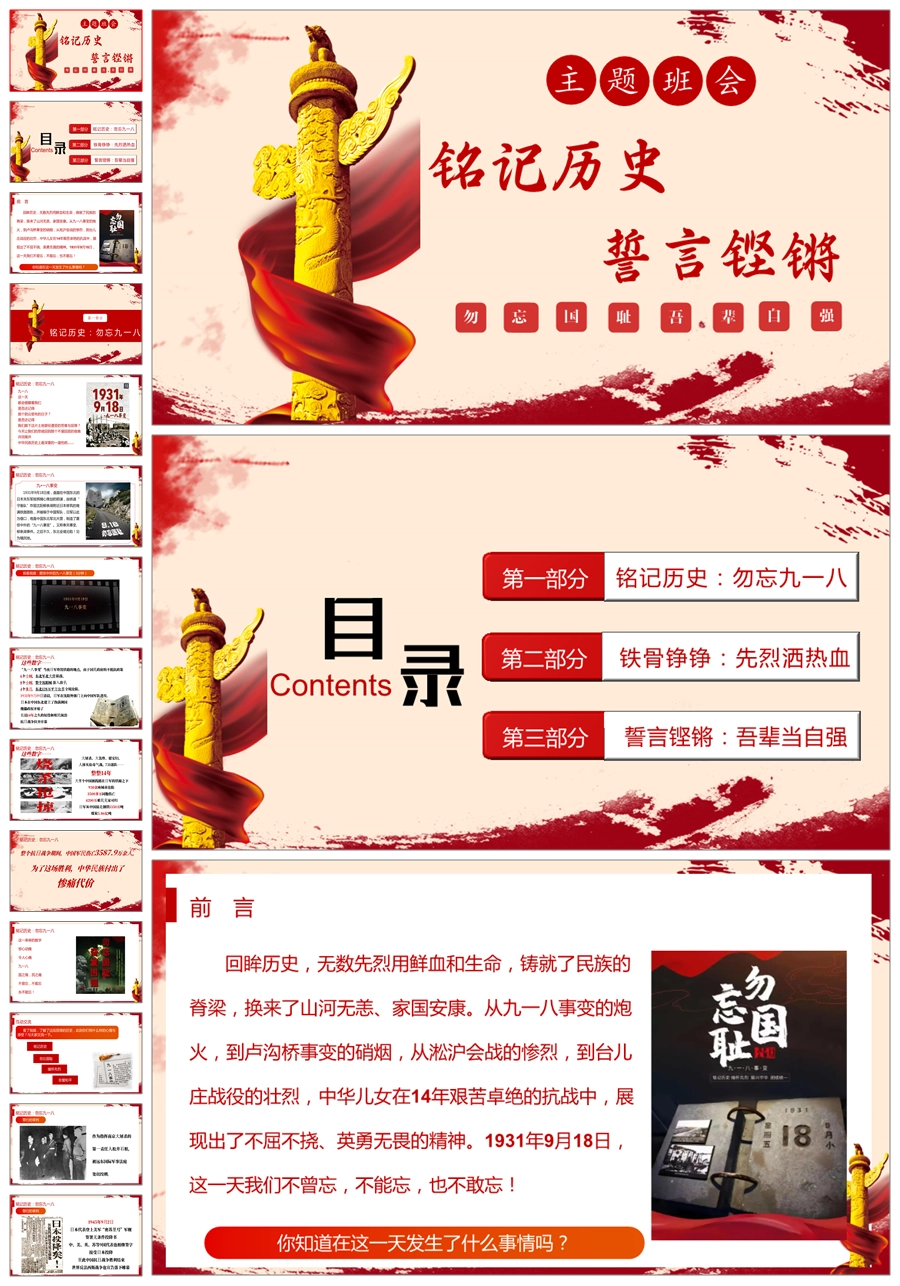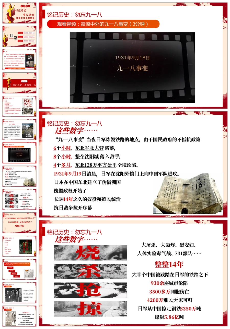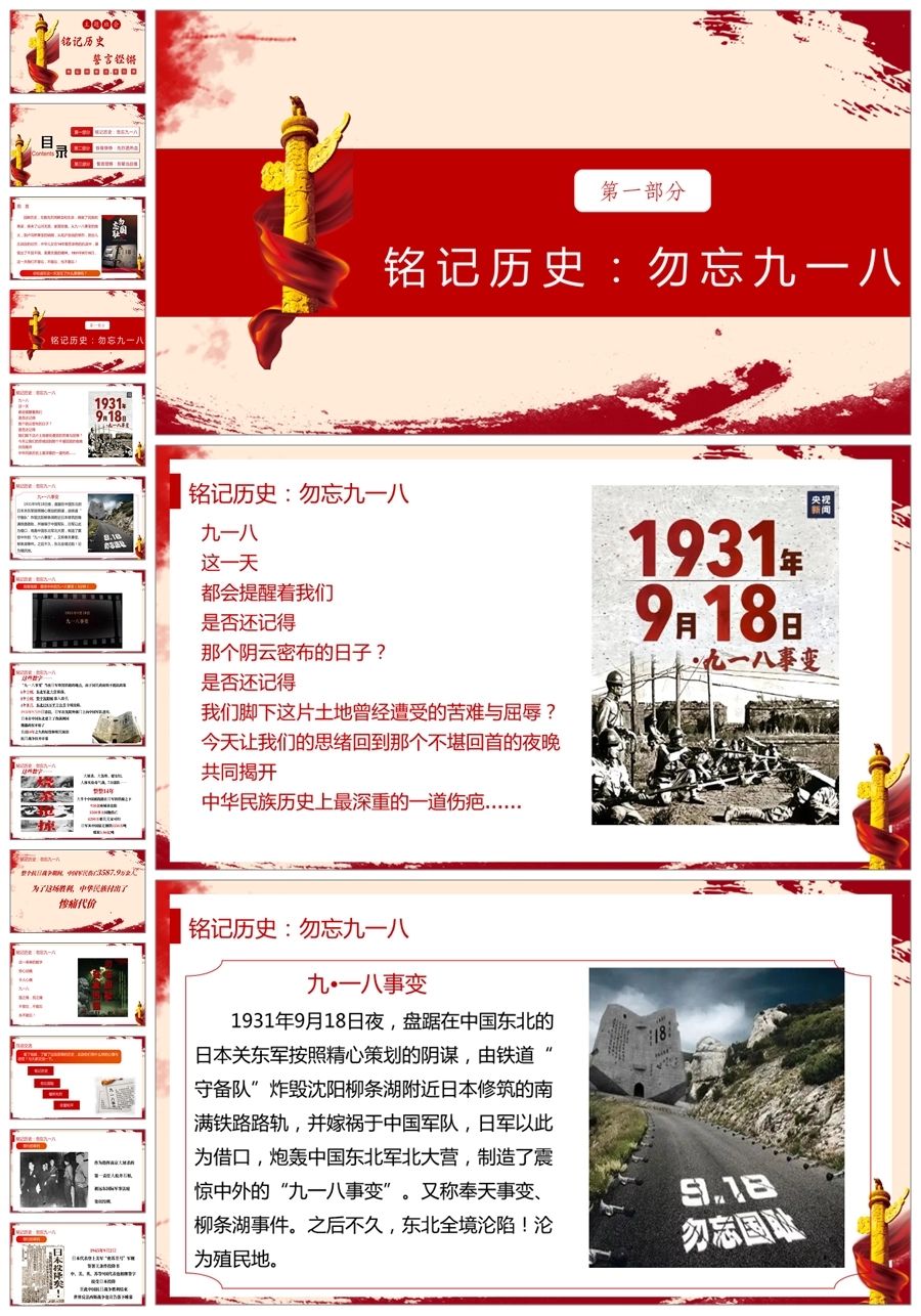 【5778】节日班会0918纪念九一八事变班会课件《铭记历史誓言铿锵》ppt课件+视频