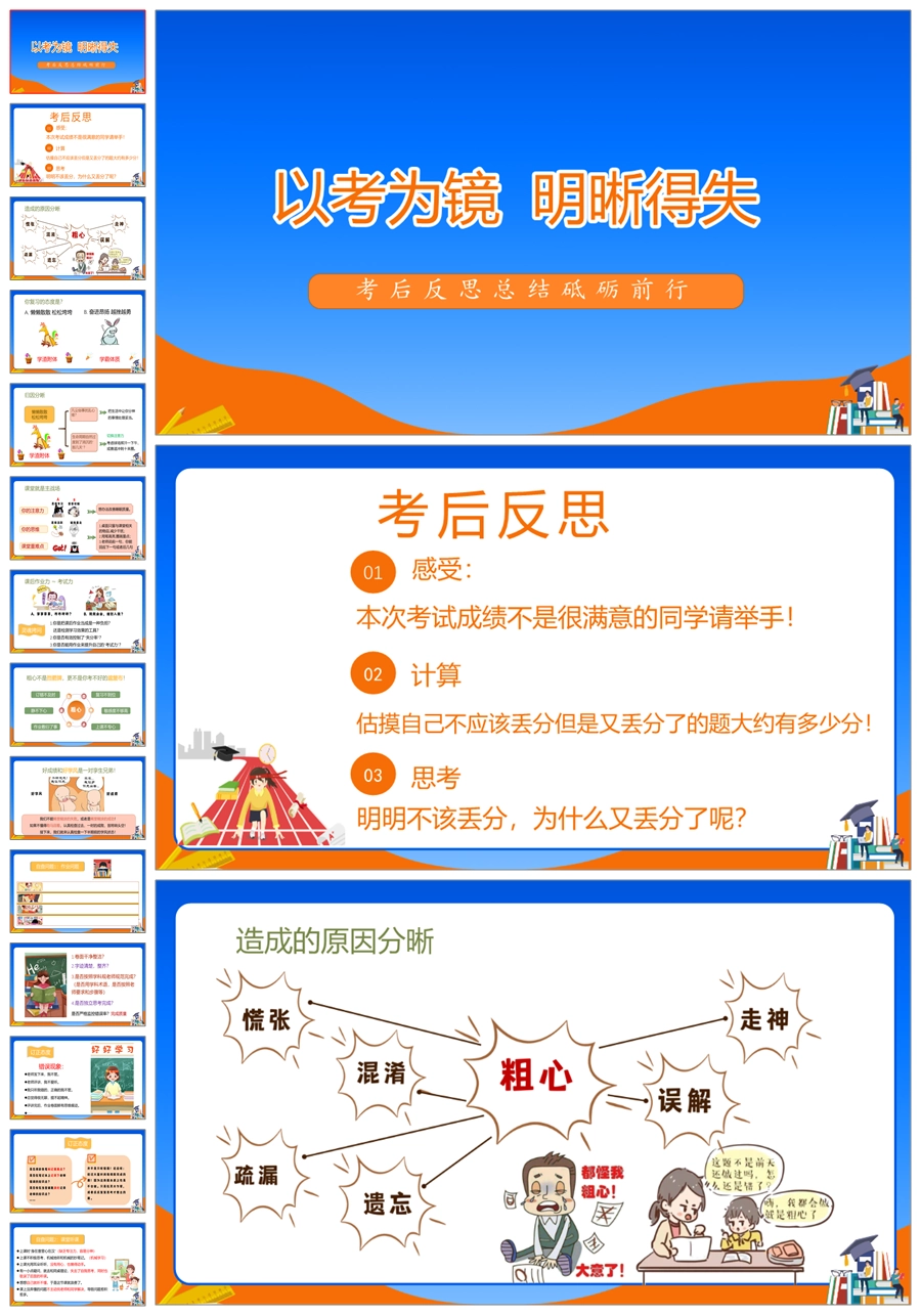 【5780】考试总结 考试分析总结班会《以考为镜明晰得失》ppt课件+教案