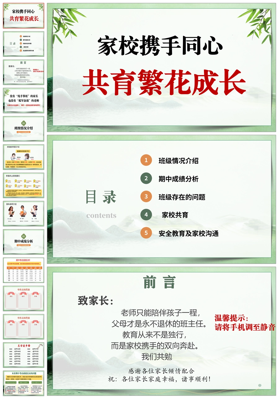 【5583】《自习的静成长的劲》竹子定律班会励志主题班会PPT课件+发言稿