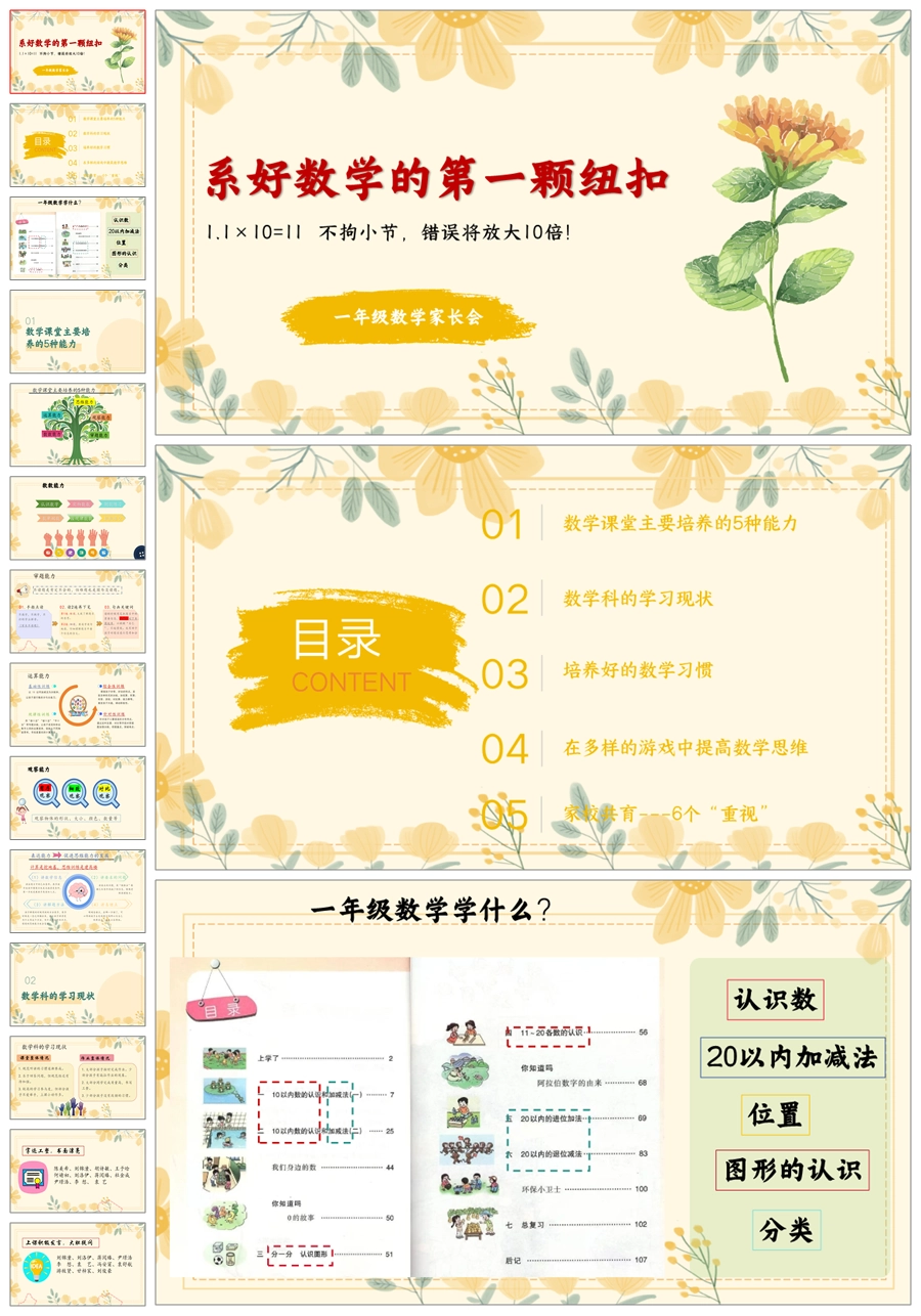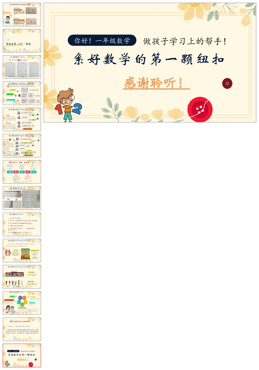 【5793】一年级数学《系好数学的第一颗纽扣》家长会ppt课件+发言稿