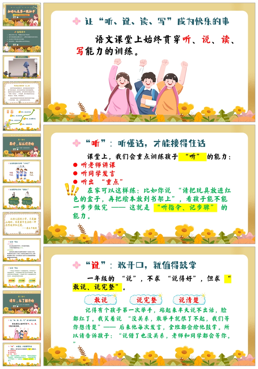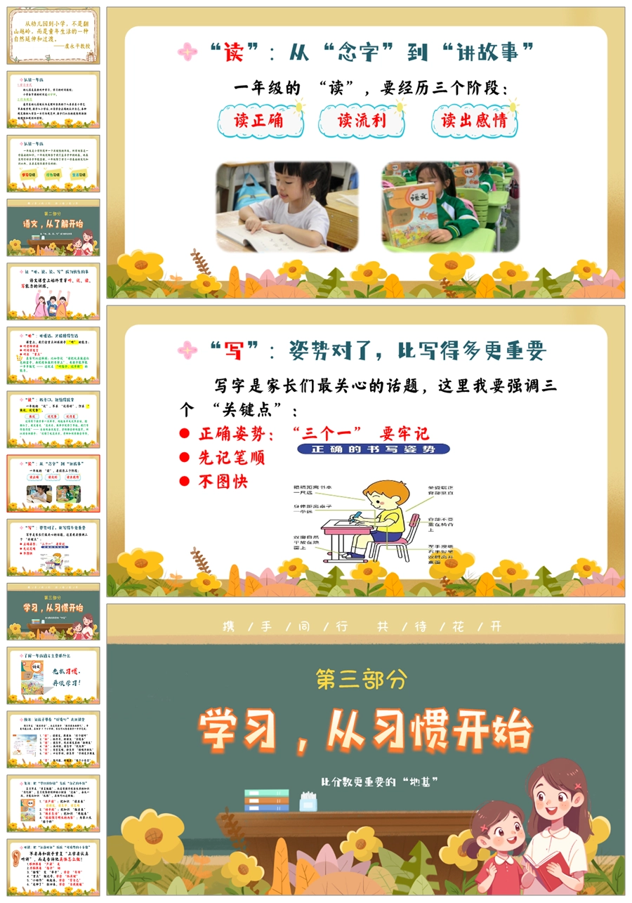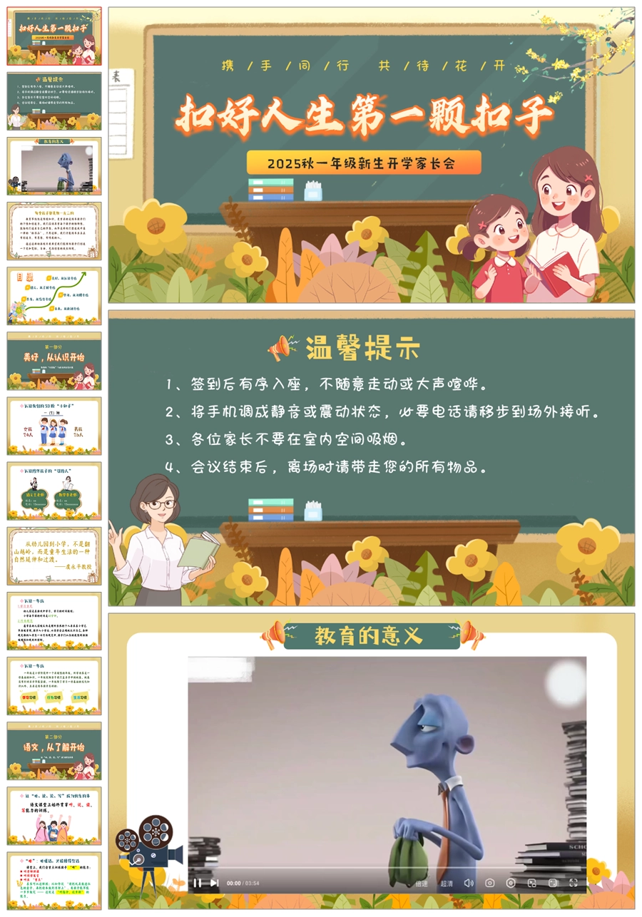 【5794】一年级家长会《扣好人生的第一粒扣子》ppt课件+发言稿