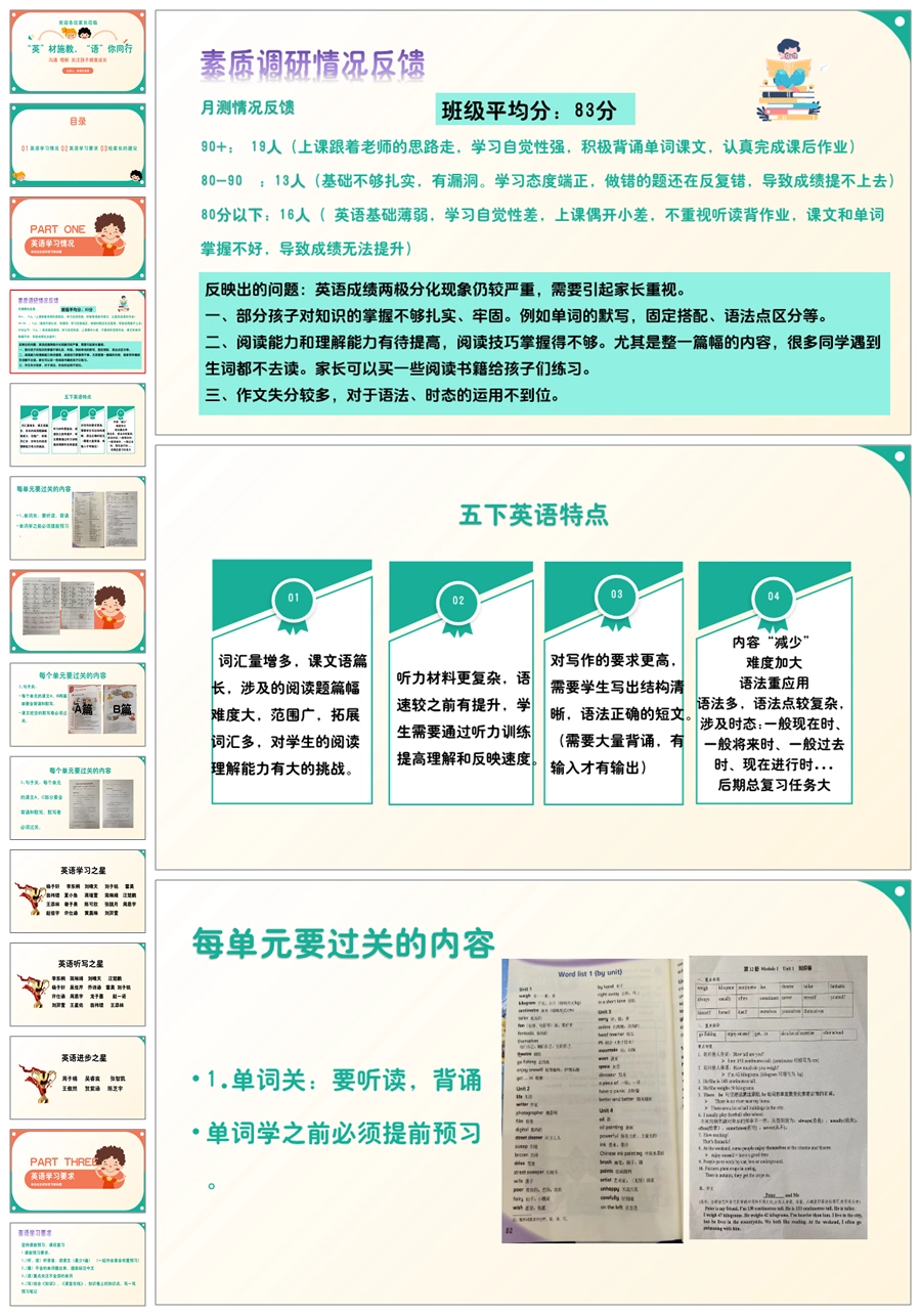 【5795】五下《“英”材施教,“语”你同行》五年级下学期英语家长会ppt课件+发言稿