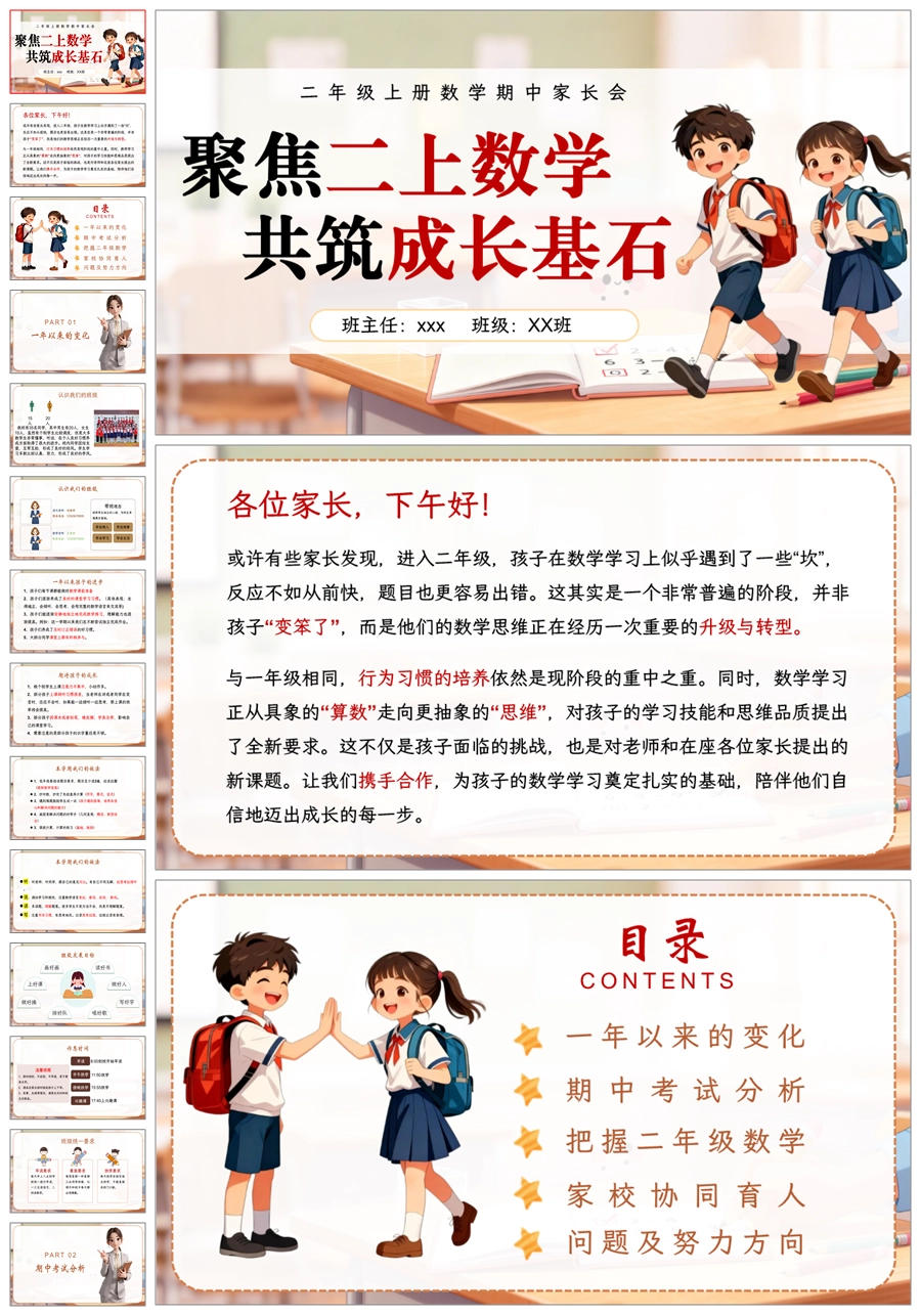 【5803】【二年级】【数学】家长会《聚焦二上数学 共筑成长基石》ppt课件+发言稿
