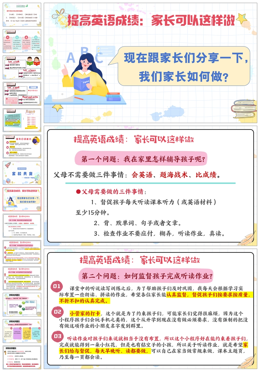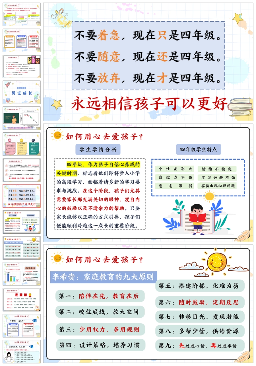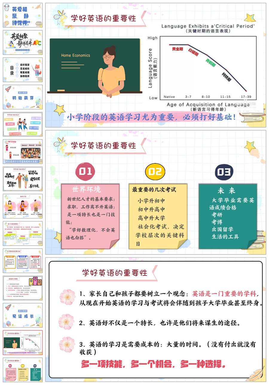 【5825】《英爱相聚,静待花开》四年级英语家长会ppt课件+发言稿