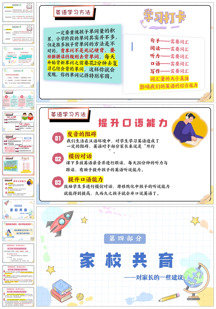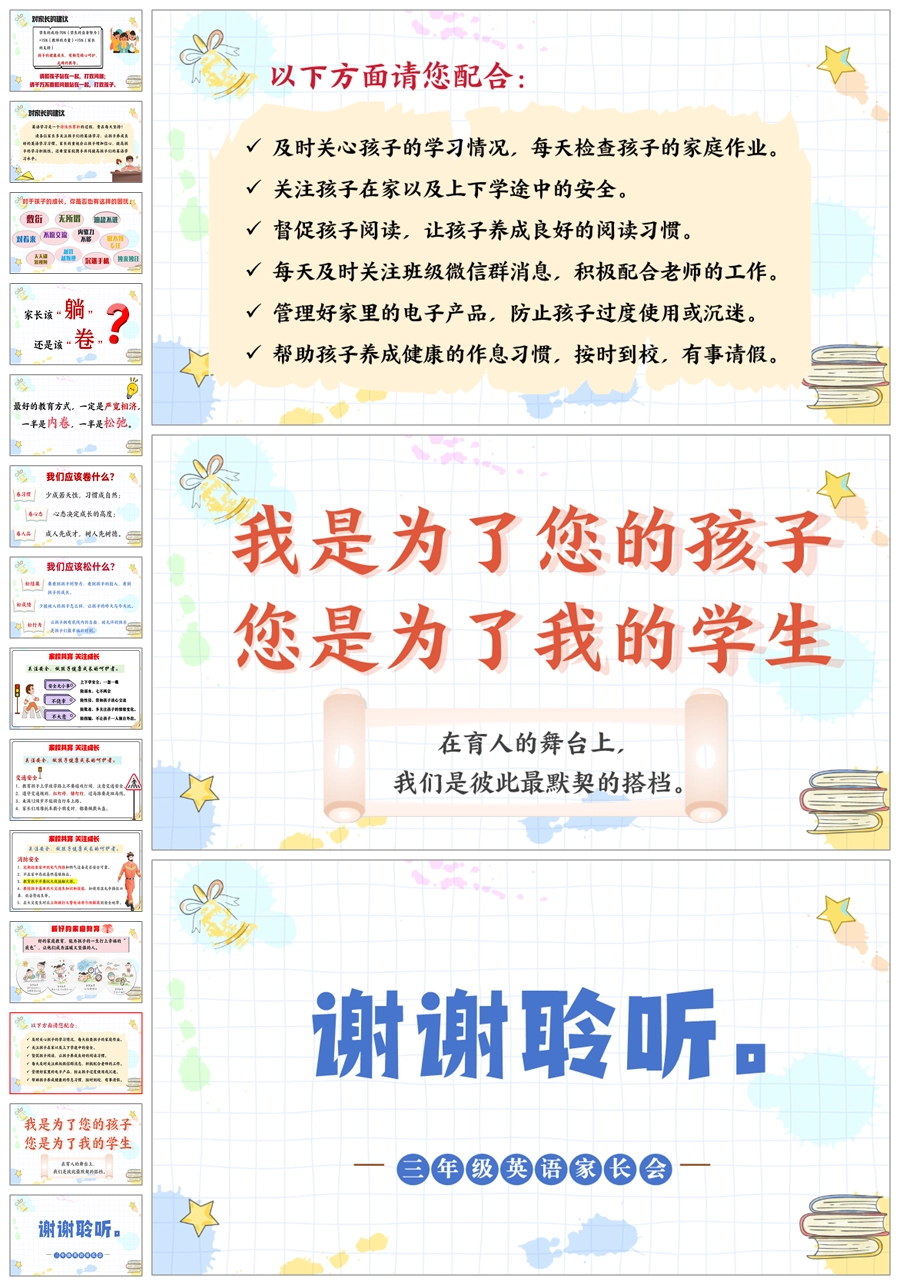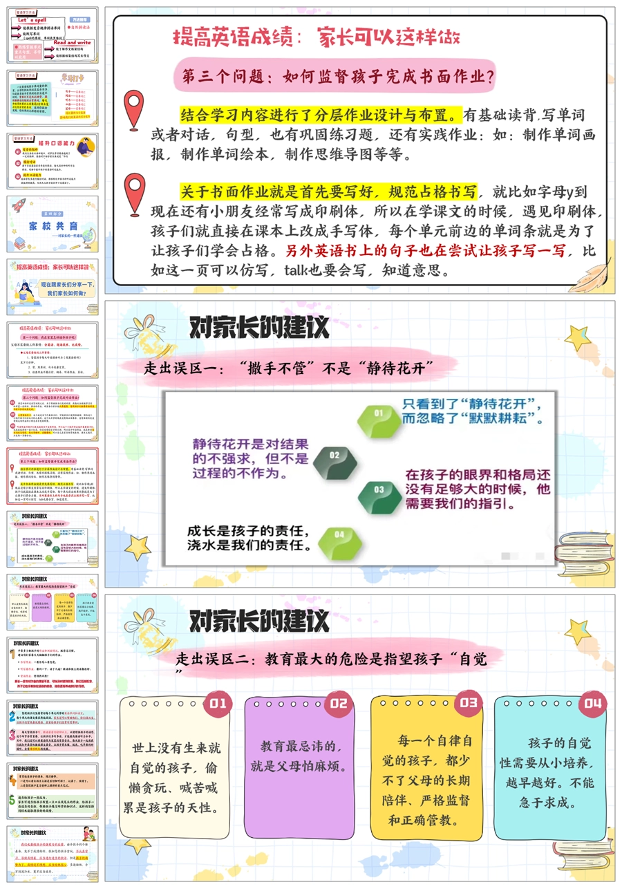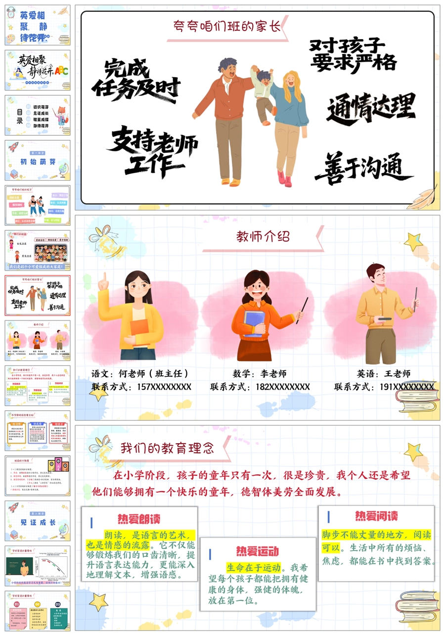 【5825】《英爱相聚,静待花开》四年级英语家长会ppt课件+发言稿