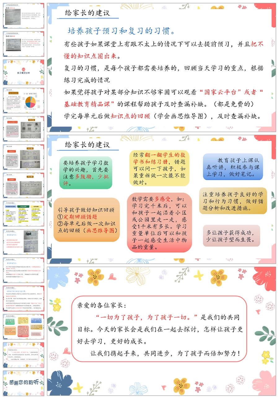 【5827】《以爱为伴静待花开》新版教材三上数学期中家长会ppt课件+发言稿