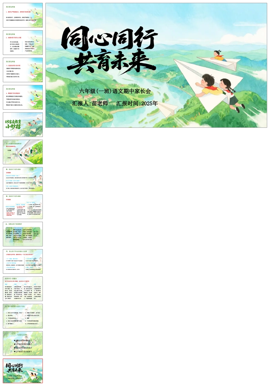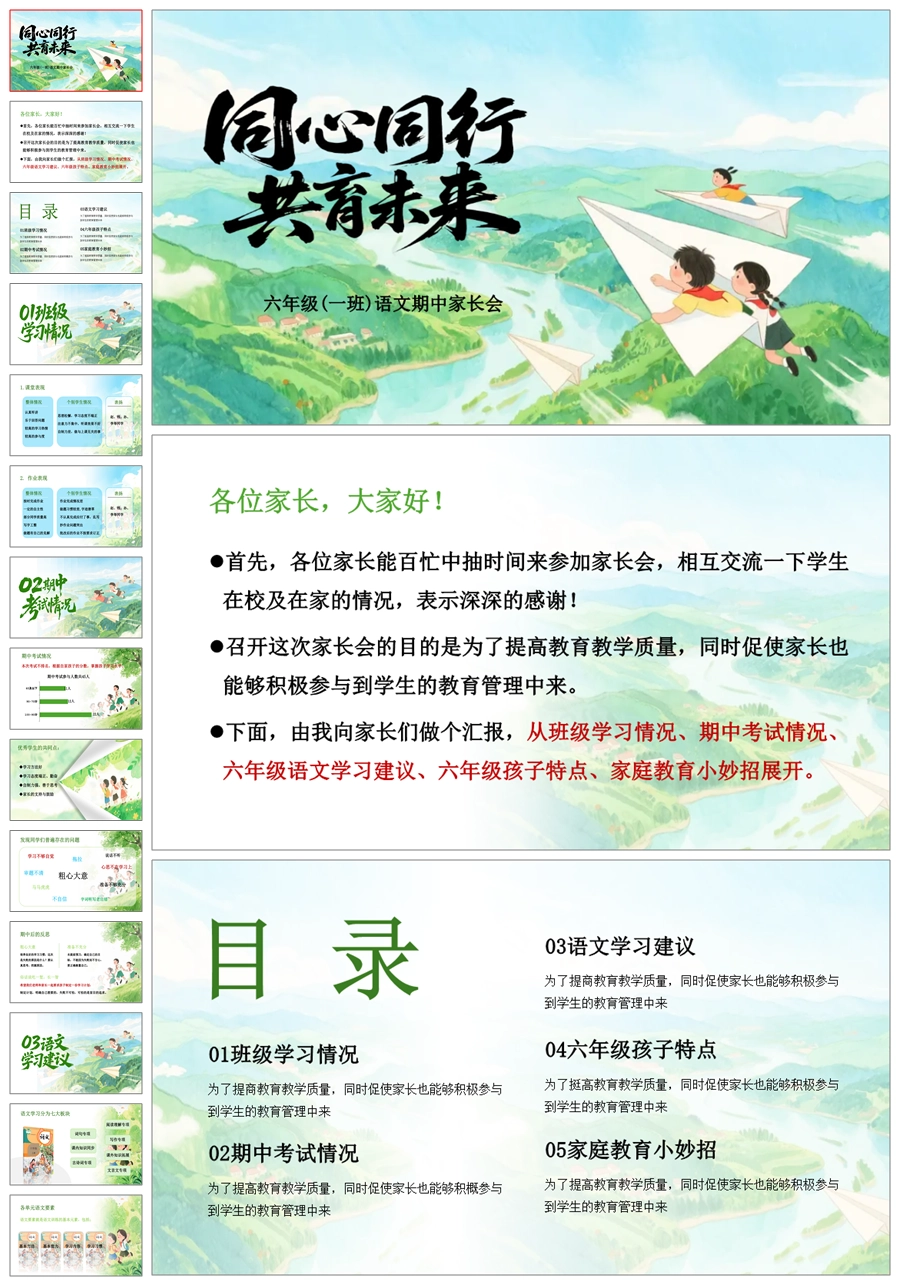 【5829】《同心同行,共育未来》六年级家长会ppt课件+发言稿