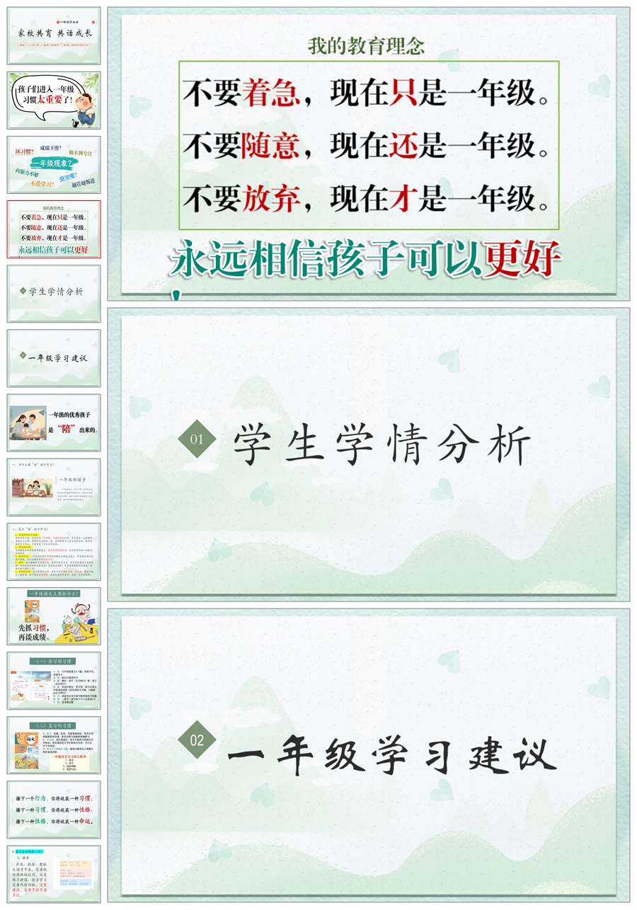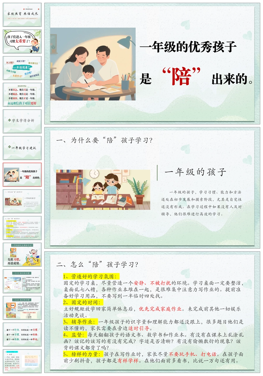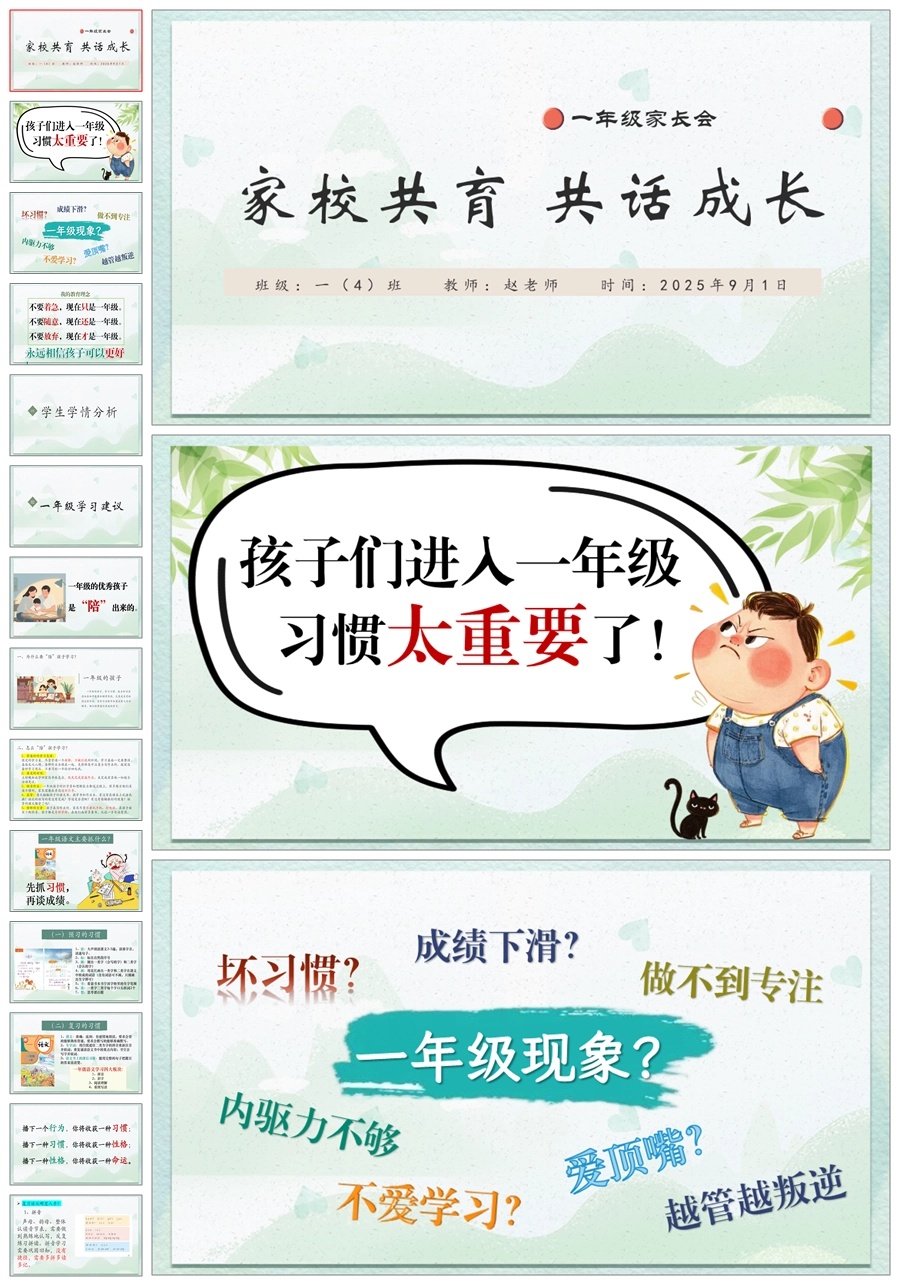 【5839】《家校共育 共话成长》一年级上家长会ppt课件+发言稿