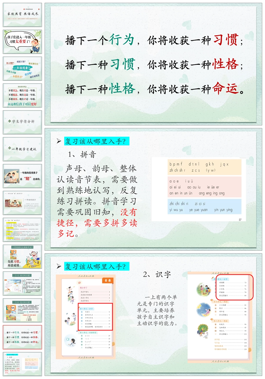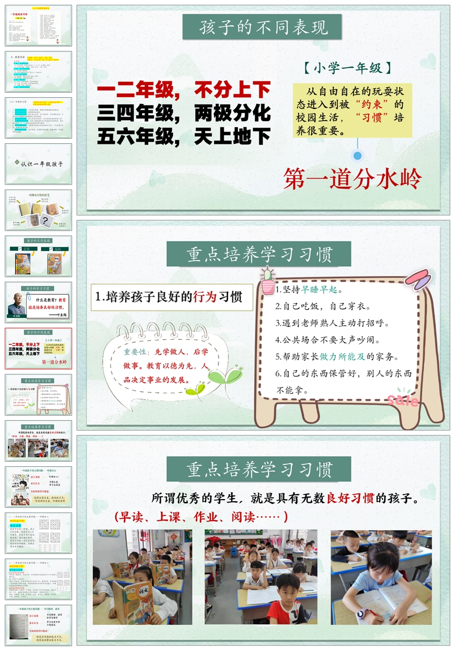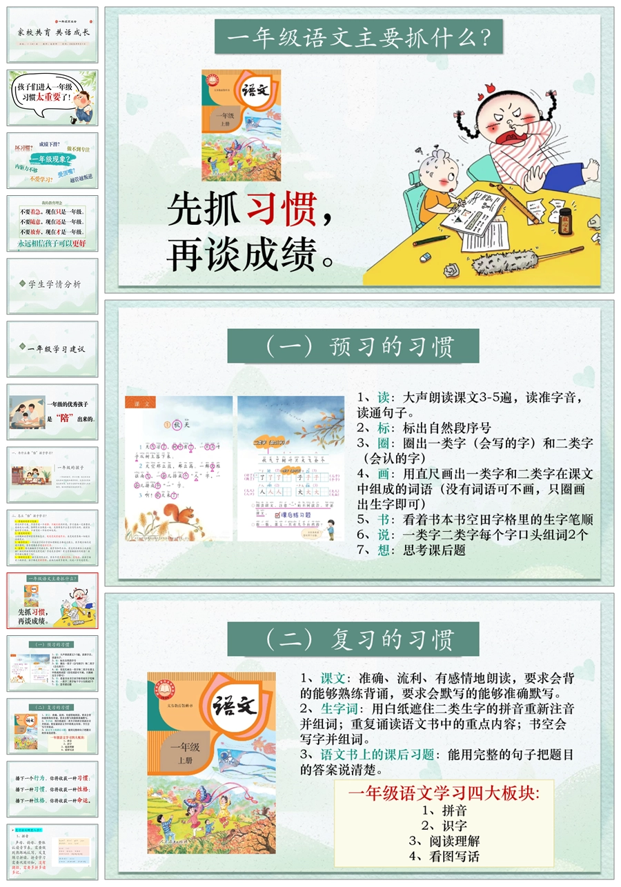 【5839】《家校共育 共话成长》一年级上家长会ppt课件+发言稿