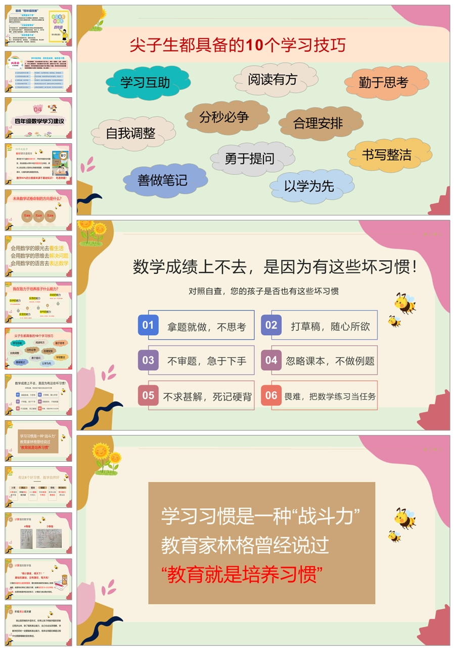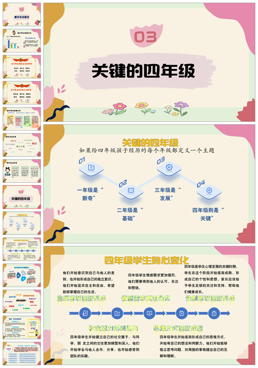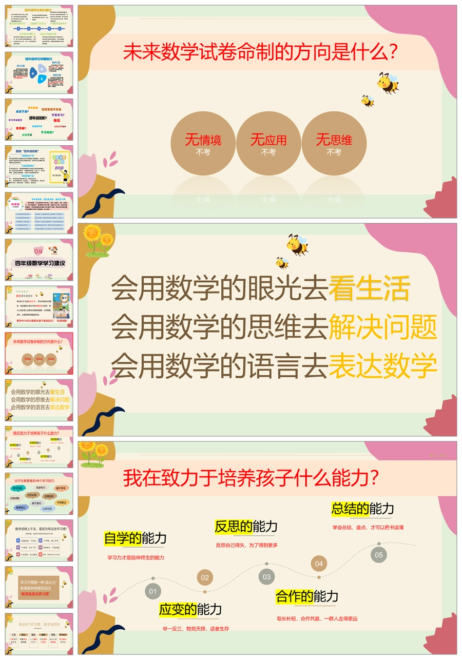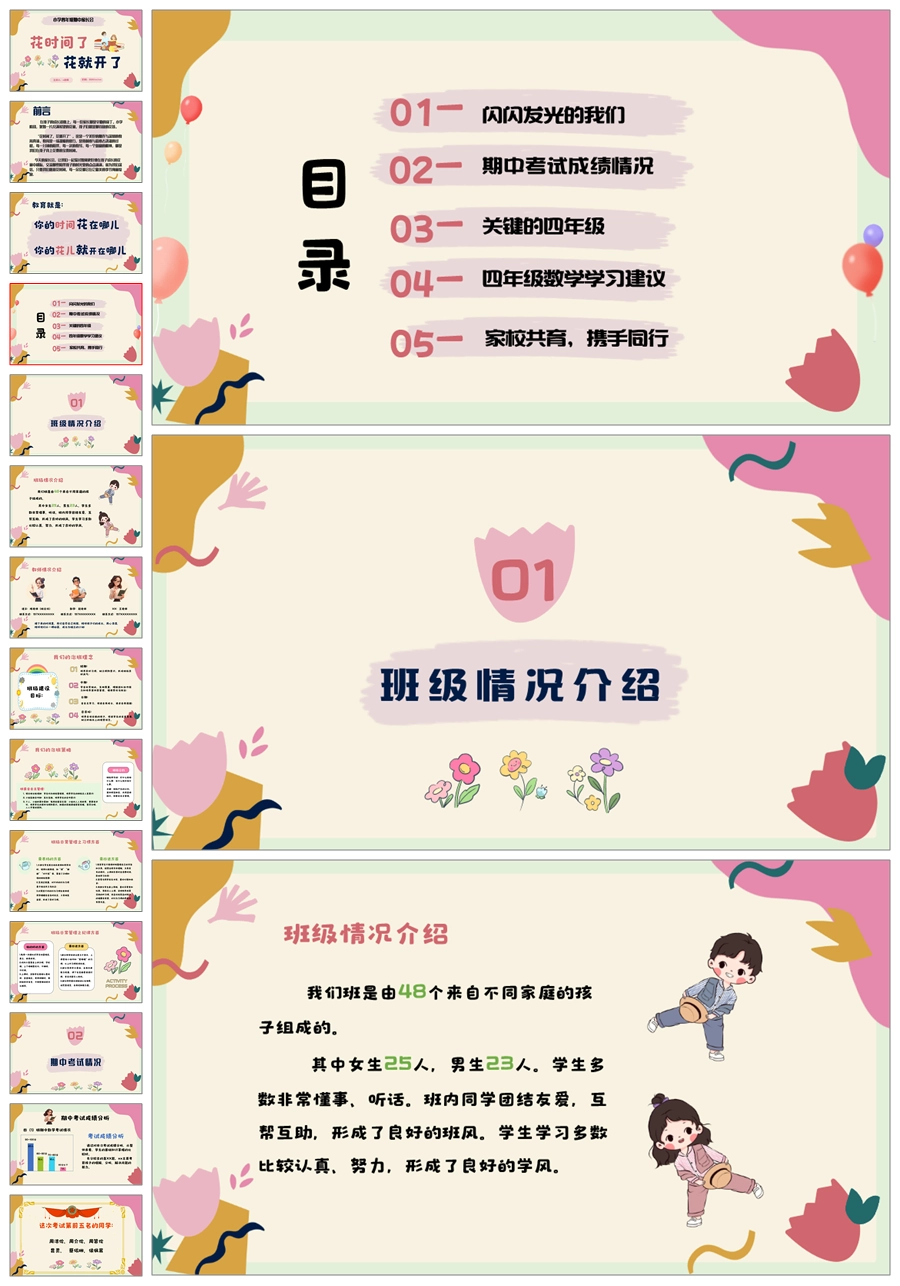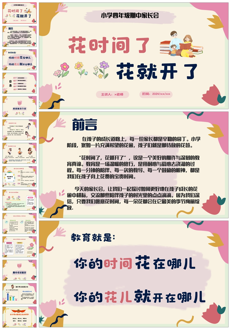 【5844】四年级数学期中家长会《花时间了,花就开了》ppt课件+发言稿