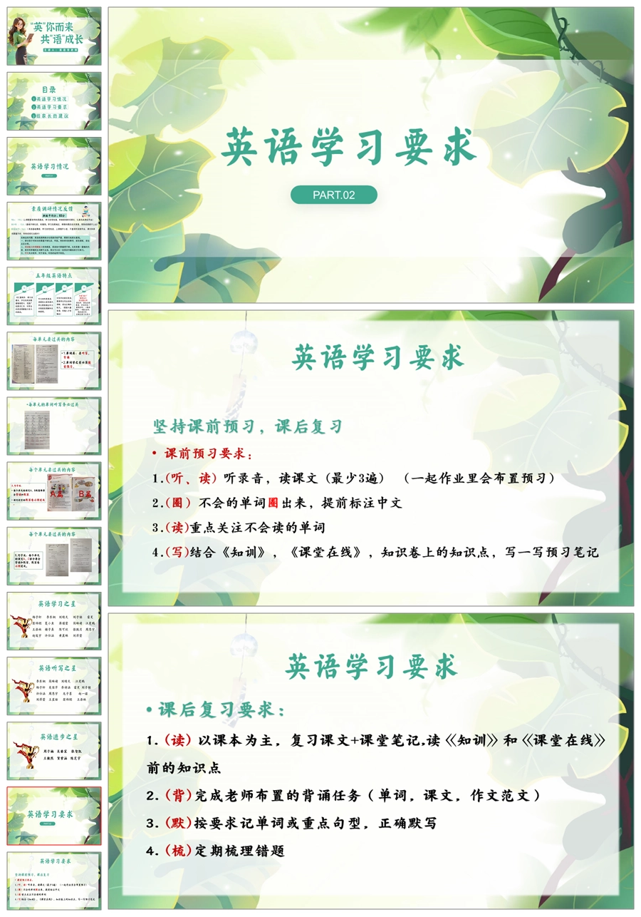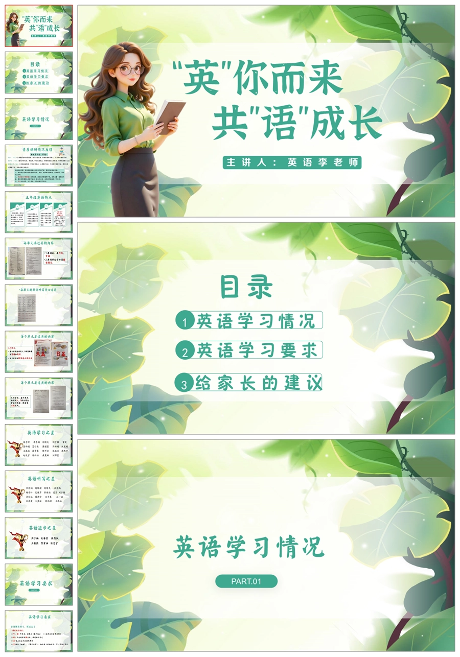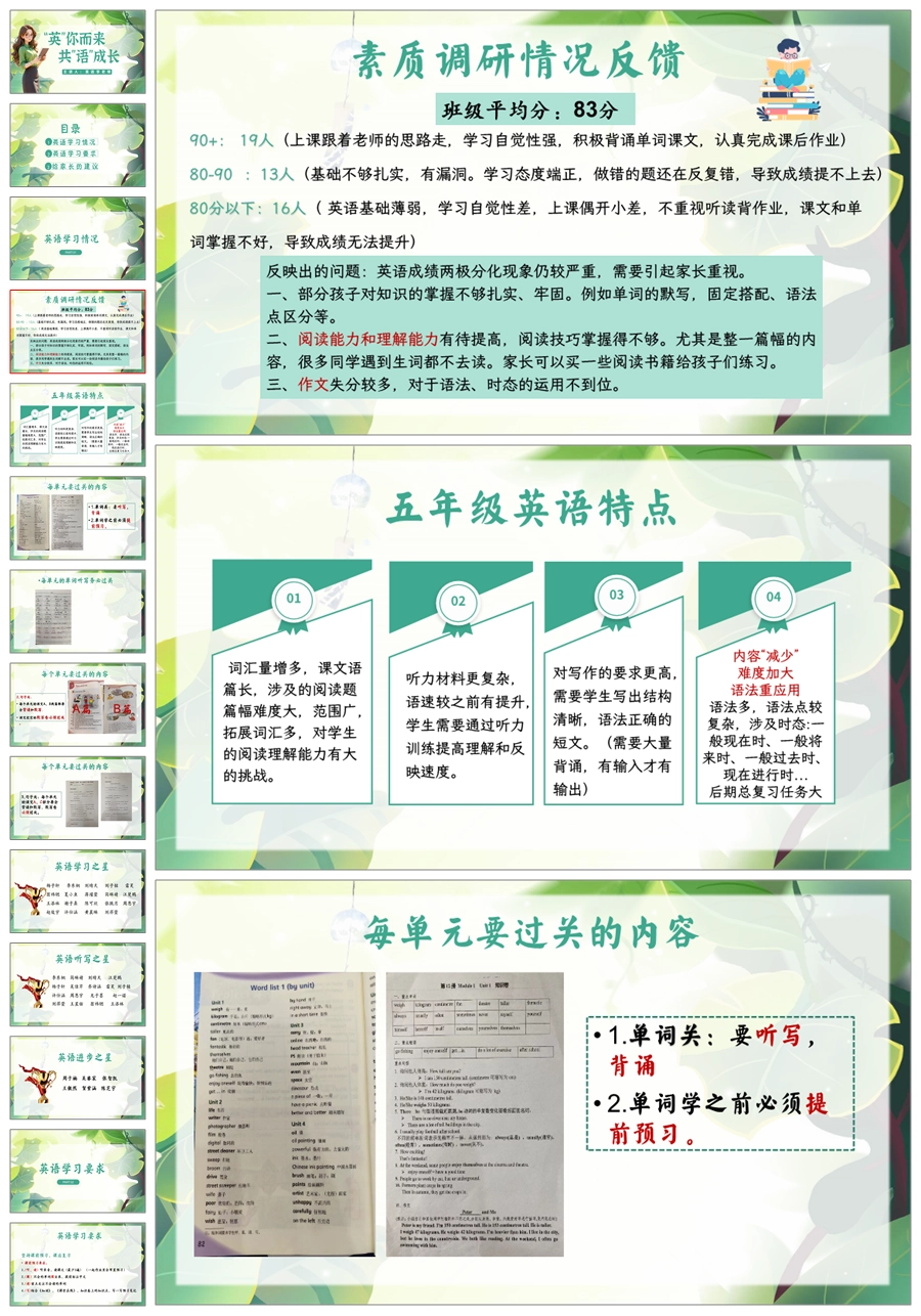 【5845】五年级英语家长会《英你而来 共语成长》ppt课件+发言稿