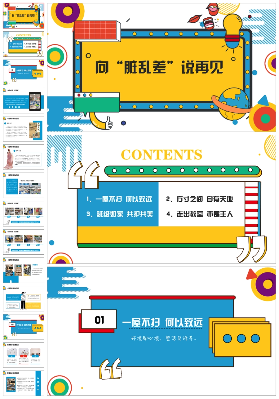 【5805】《向“脏乱差”说再见》校园班级卫生清洁教育主题班会课ppt课件