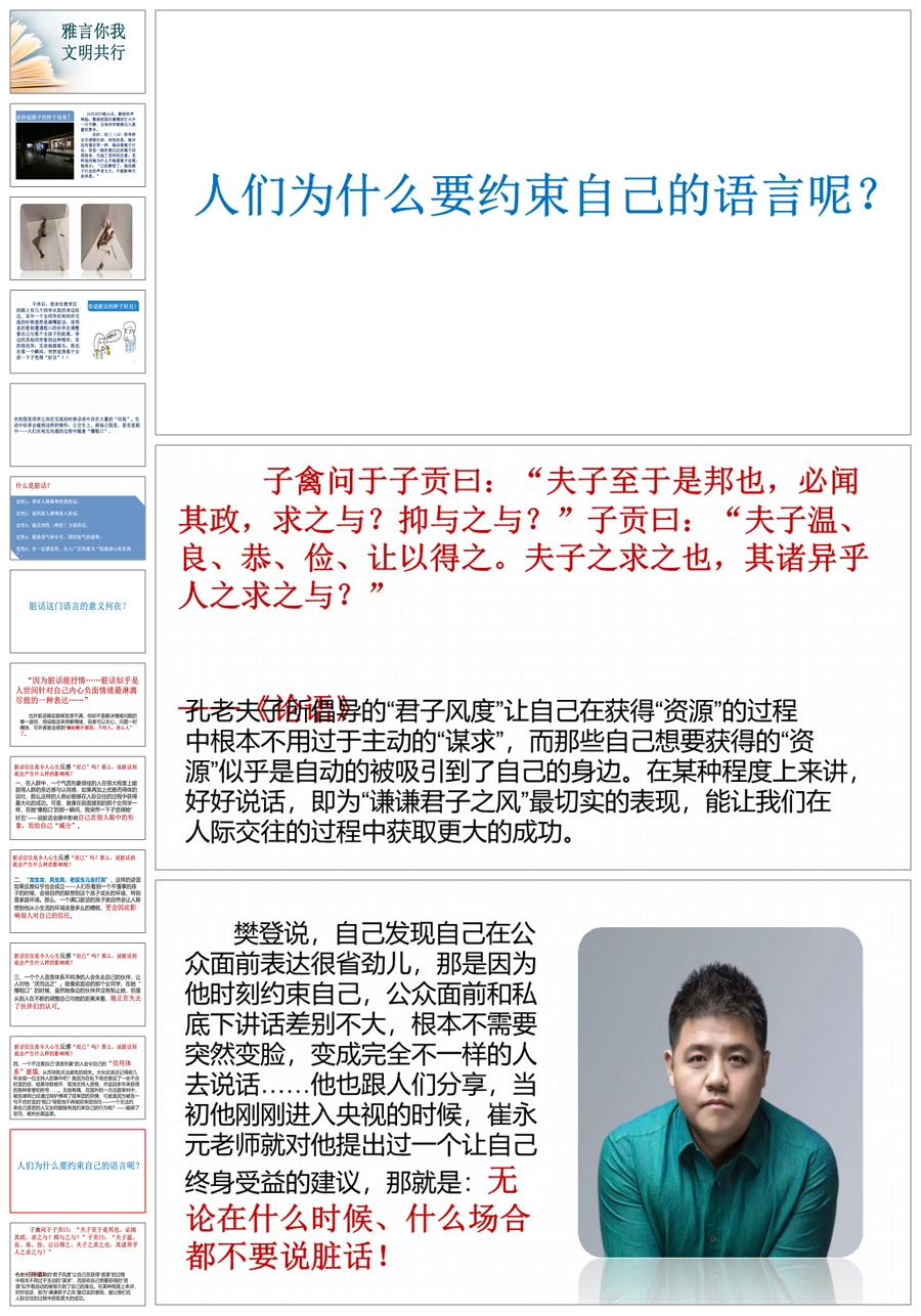 【5809】【初高中】【文明教育】主题班会:雅言你我文明共行ppt课件