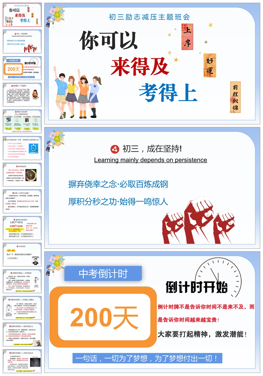 【5799】【初三励志减压】主题班会《你可以,来得及,考得上》ppt课件+教案