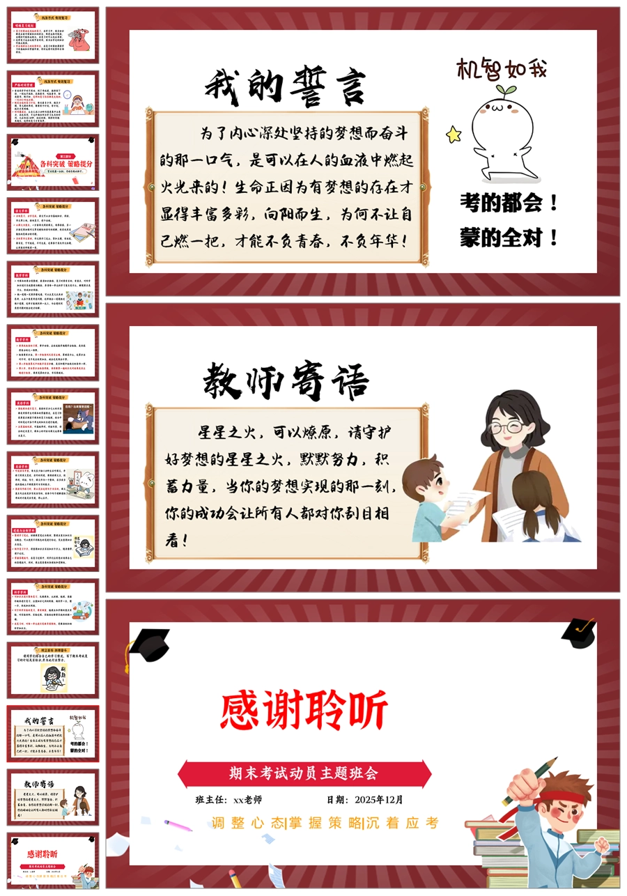 【8360】【期末动员】《和小伙伴一起战期末》期末考试动员主题班会PPT(课件+教案+挑战书)