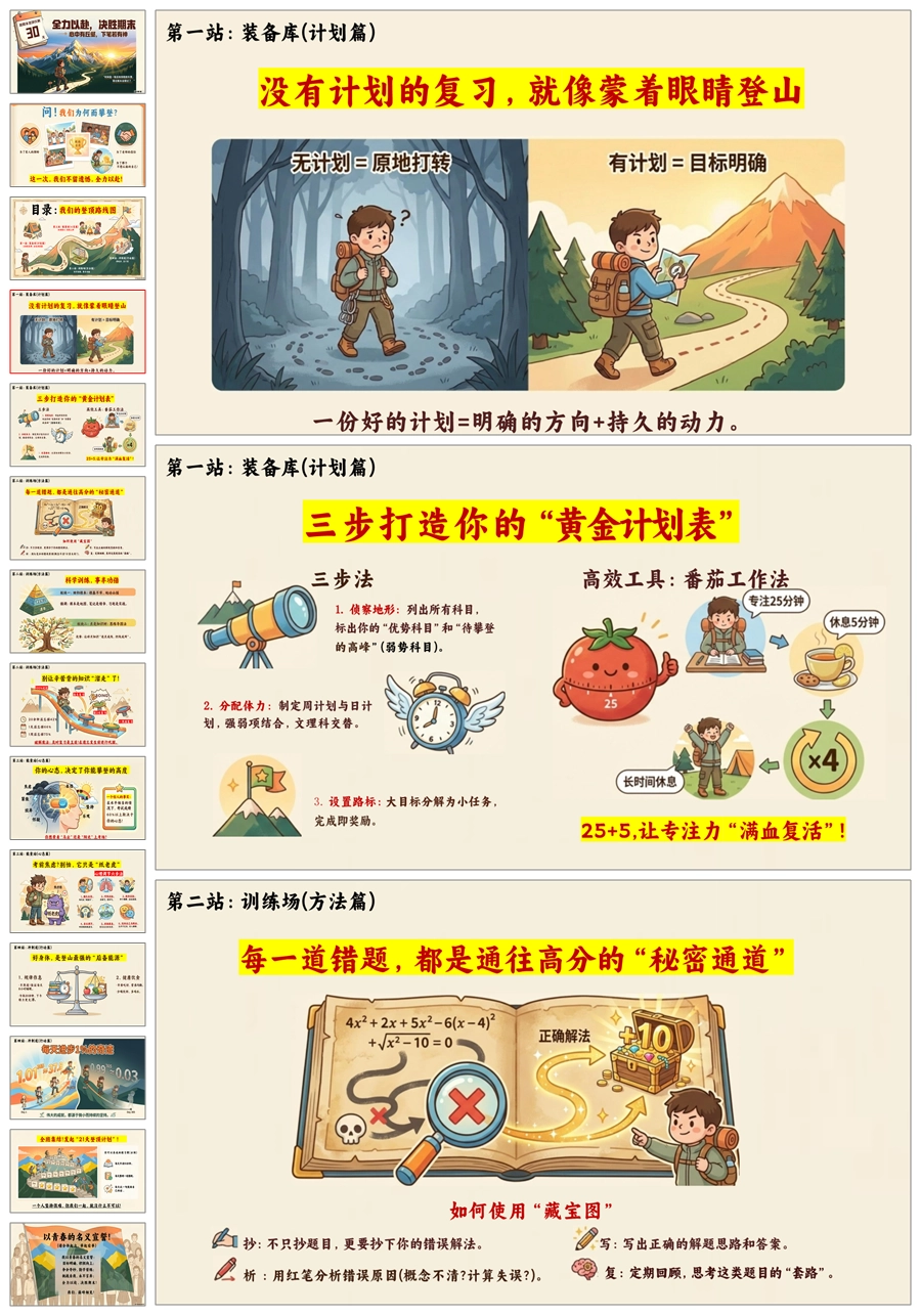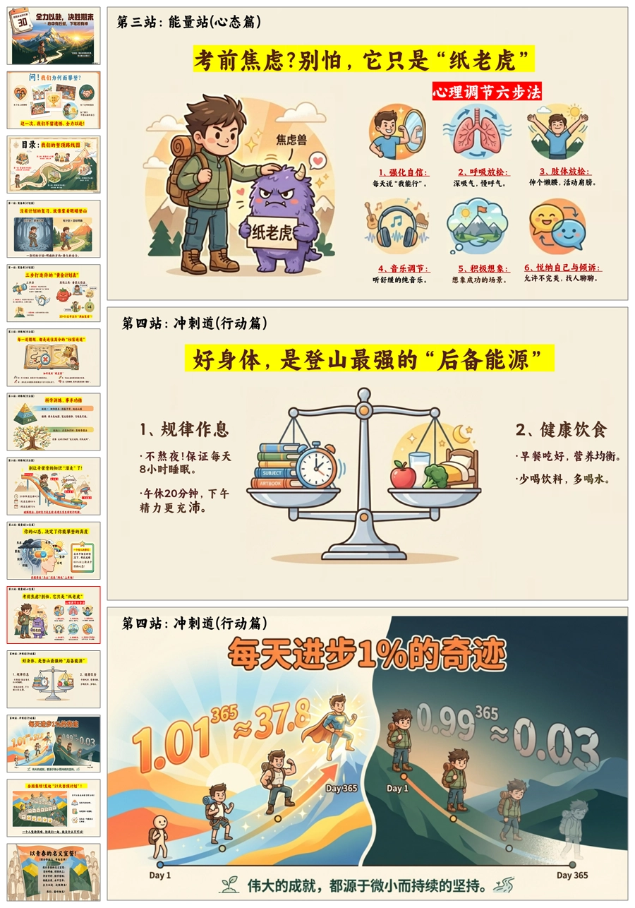 【5826】《全力以赴,决胜期末》通用【期末动员】登顶期末巅峰PPT课件+发言稿+挑战书