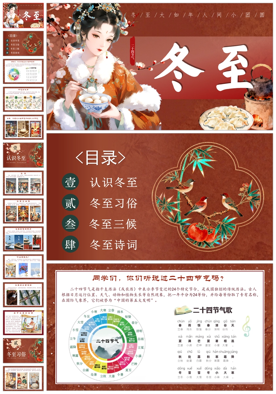 【5832】节日班会24节气冬至介绍主题班会PPT课件