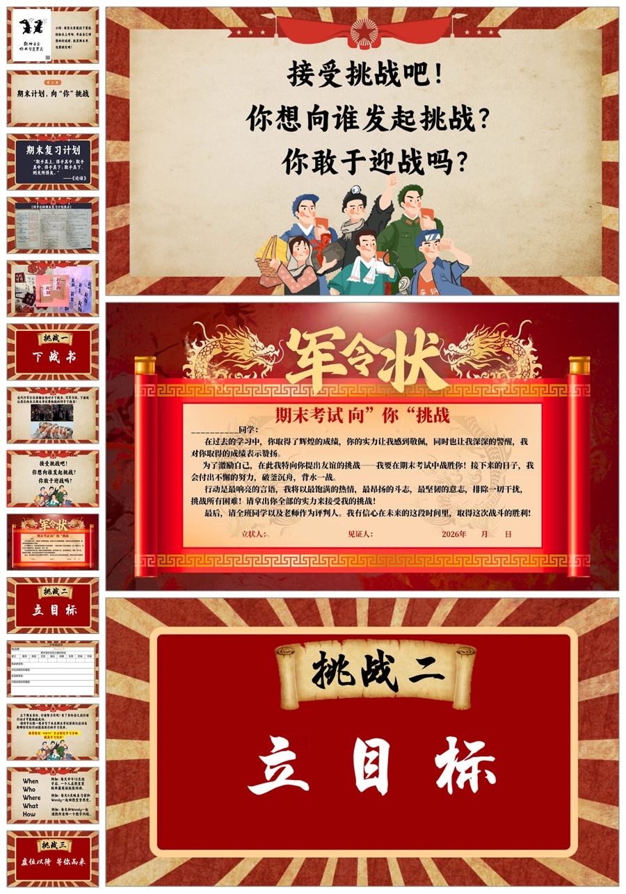 【5834】通用【期末总动员】《全力以赴备战期末》PPT课件+发言稿+挑战书