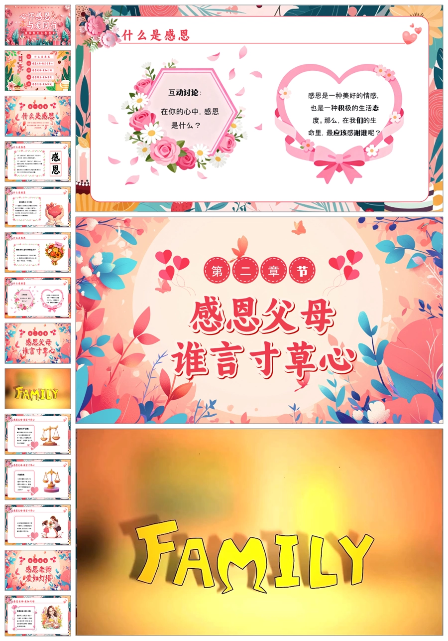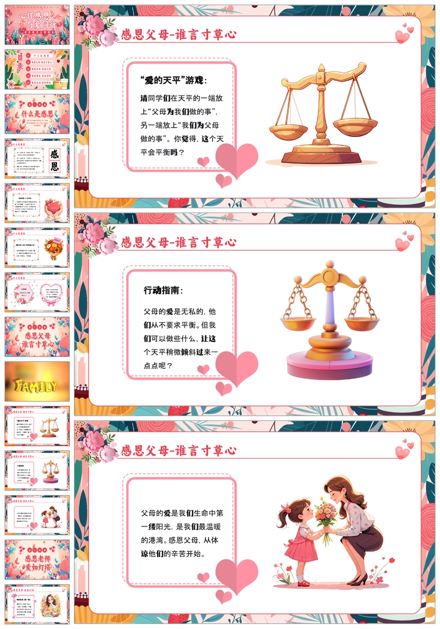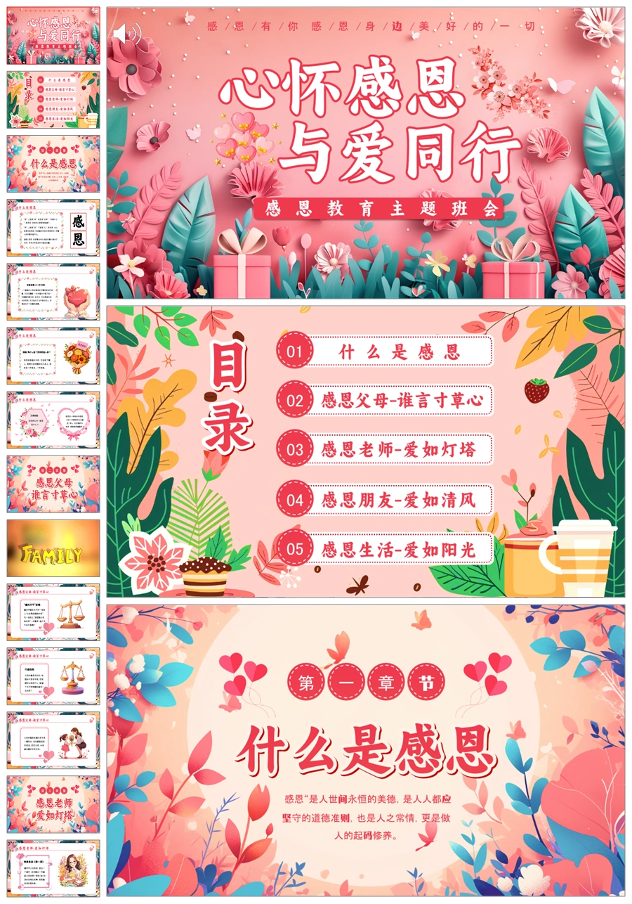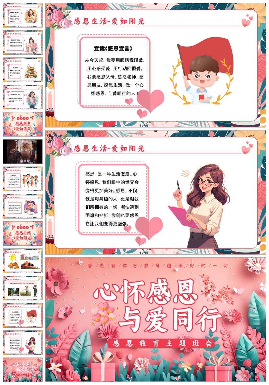 【5837】小学生《心怀感恩,与爱同行》主题班会PPT课件+教案+逐字稿+视频