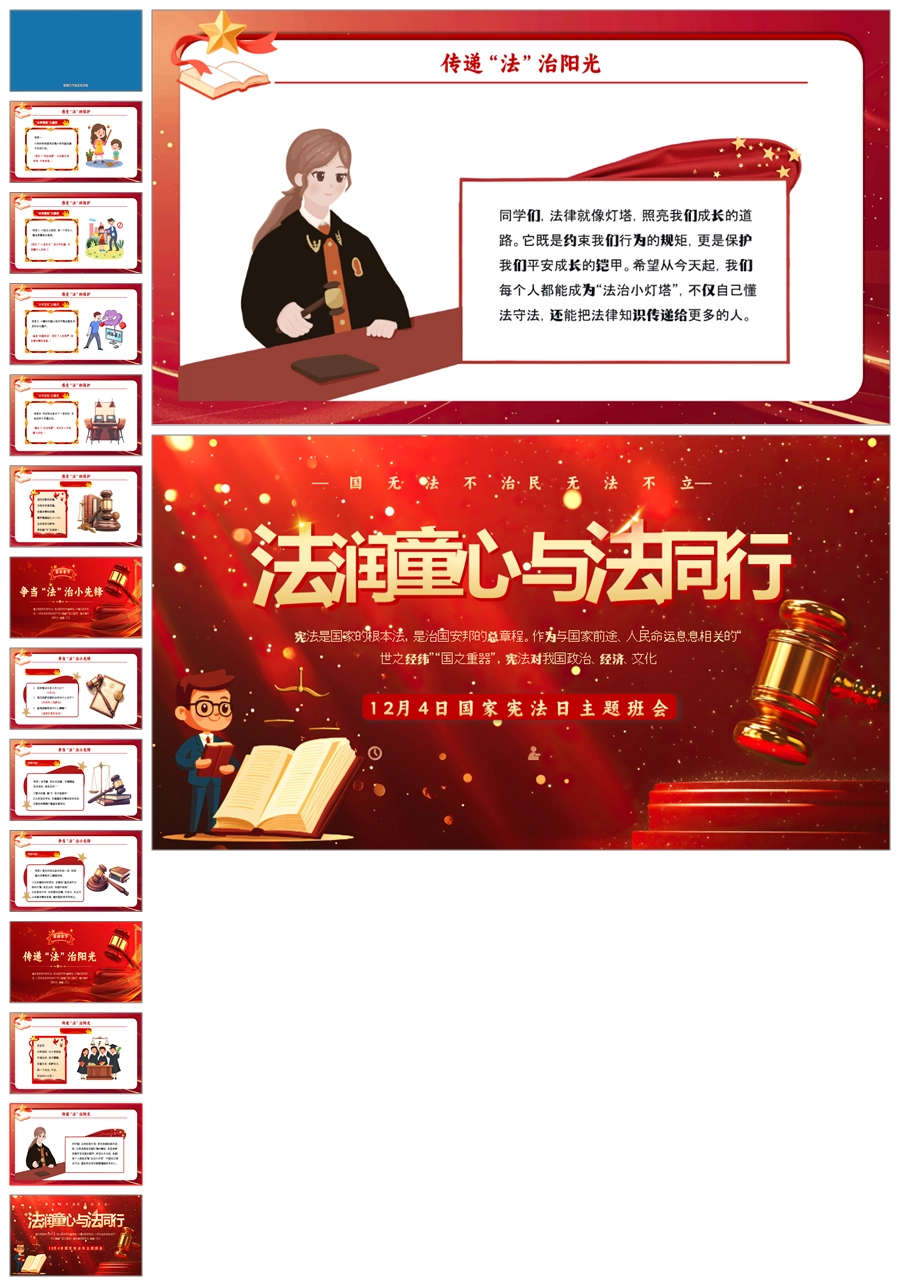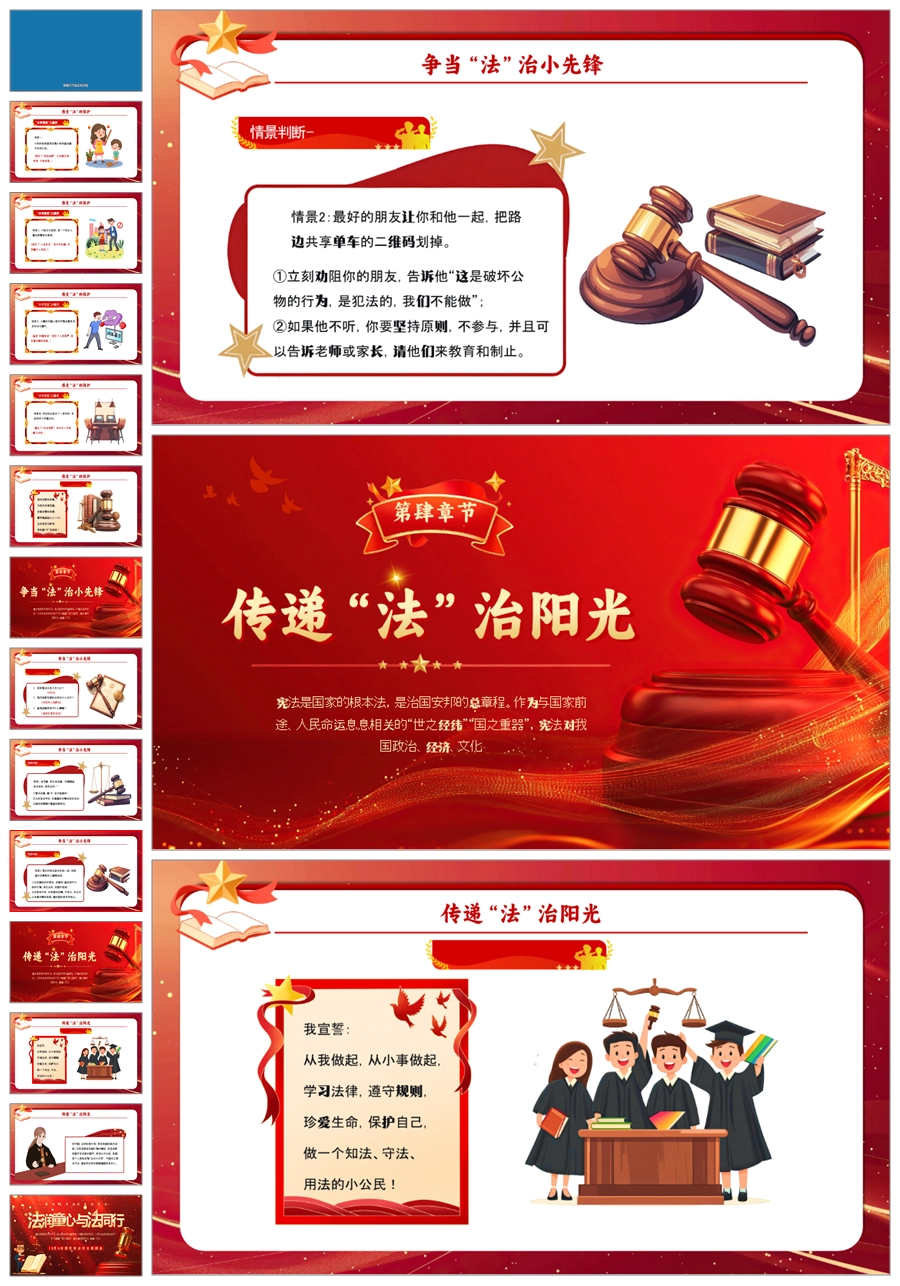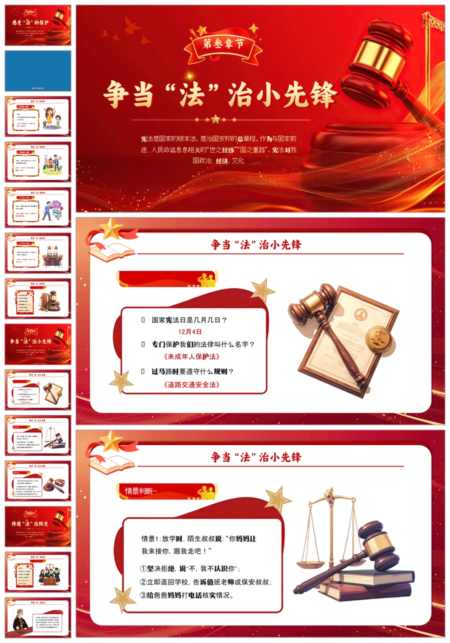 【5835】小学生《法润童心,与法同行》主题班会PPT课件+教案+发言稿+视频