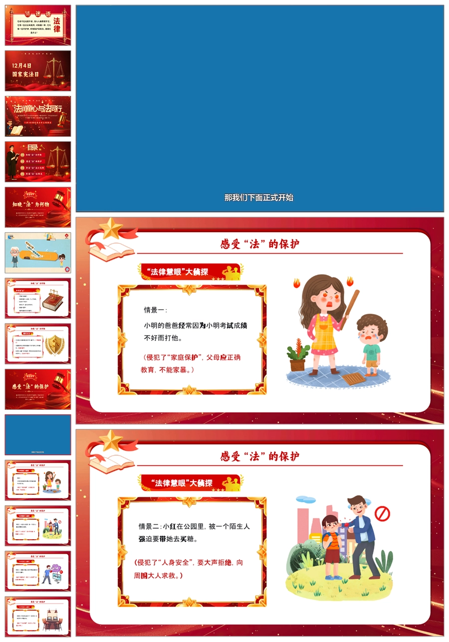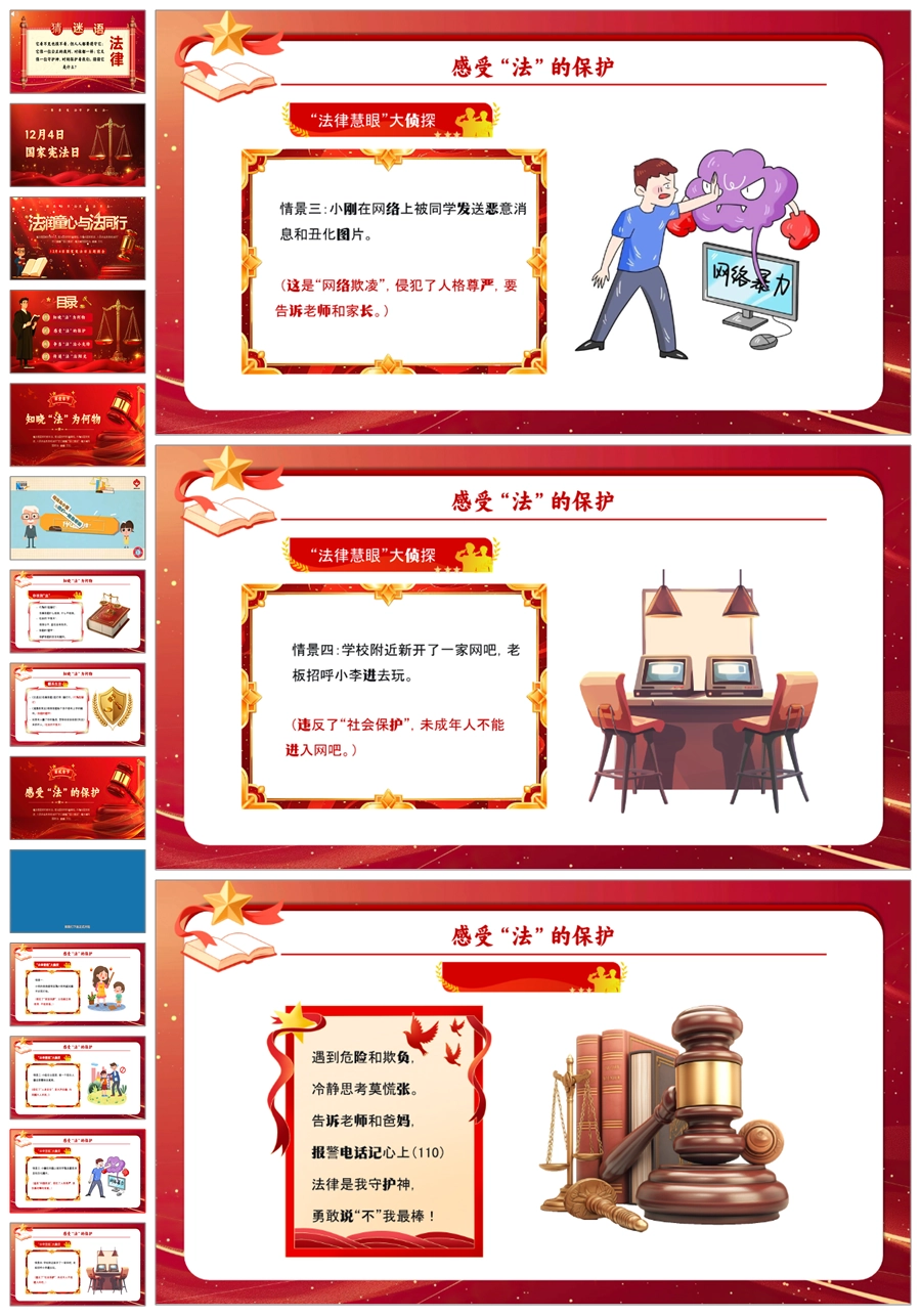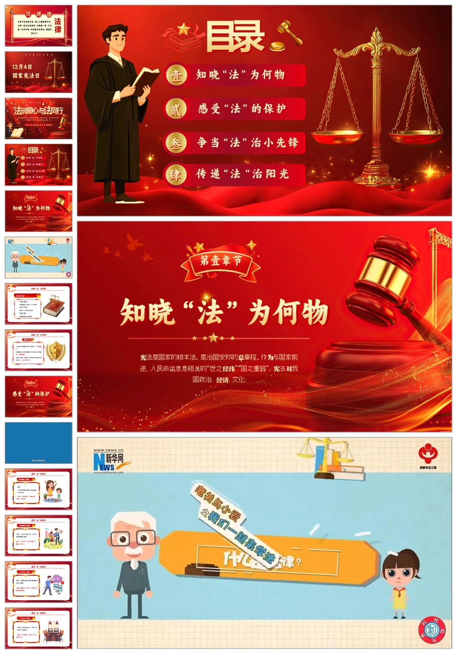 【5835】小学生《法润童心,与法同行》主题班会PPT课件+教案+发言稿+视频