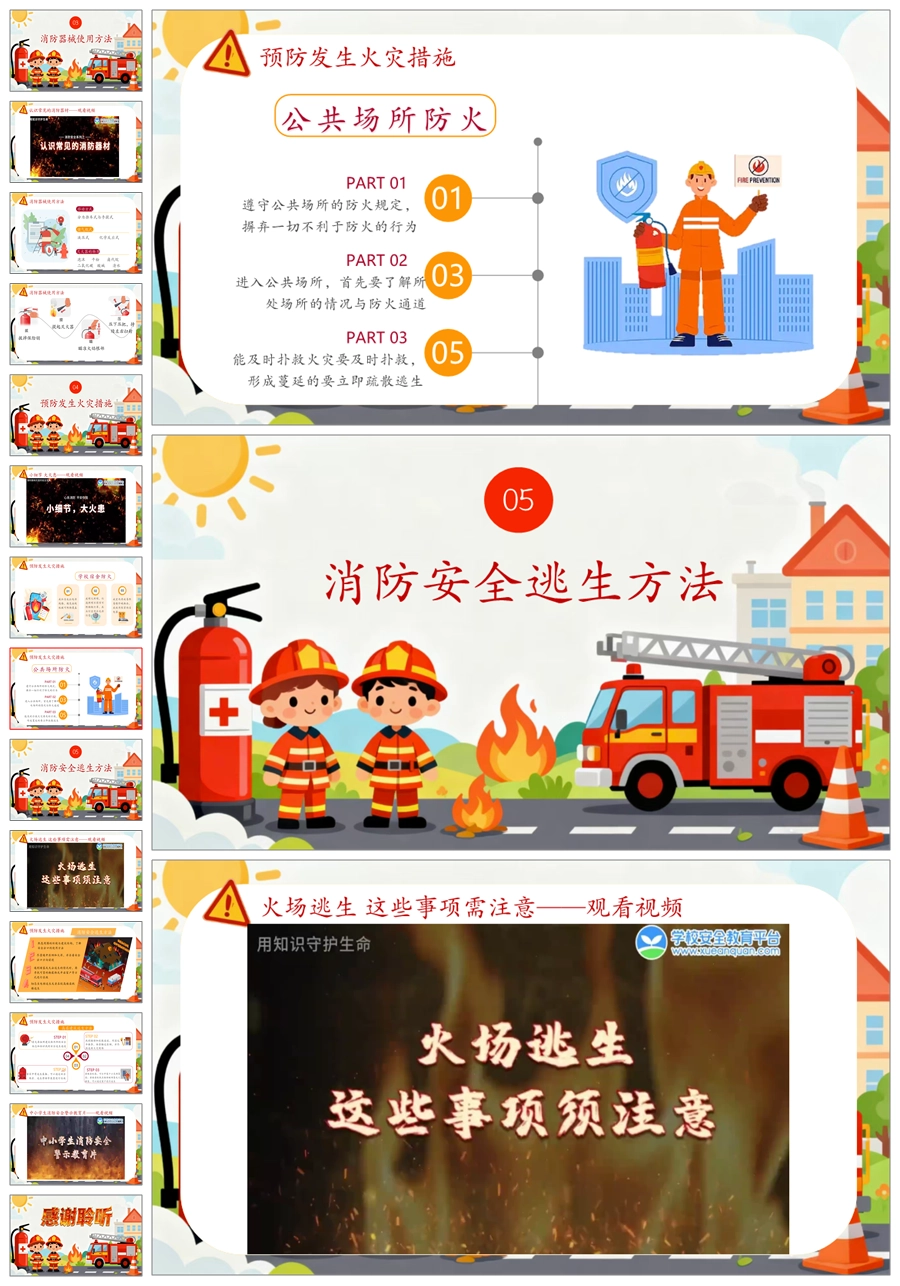 【5843】《消防安全 生命至上》全国安全消防日主题班会ppt课件+发言稿+教案+视频