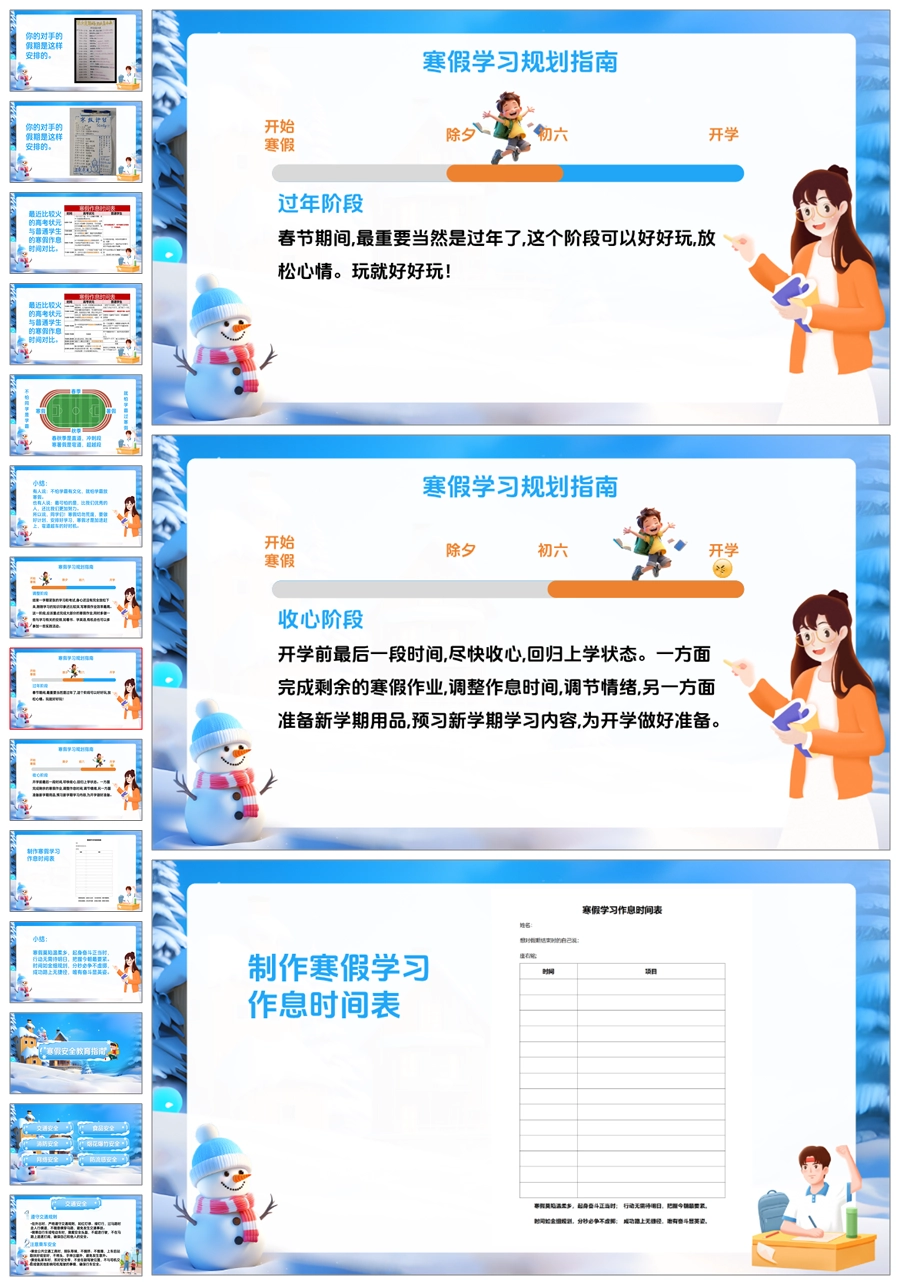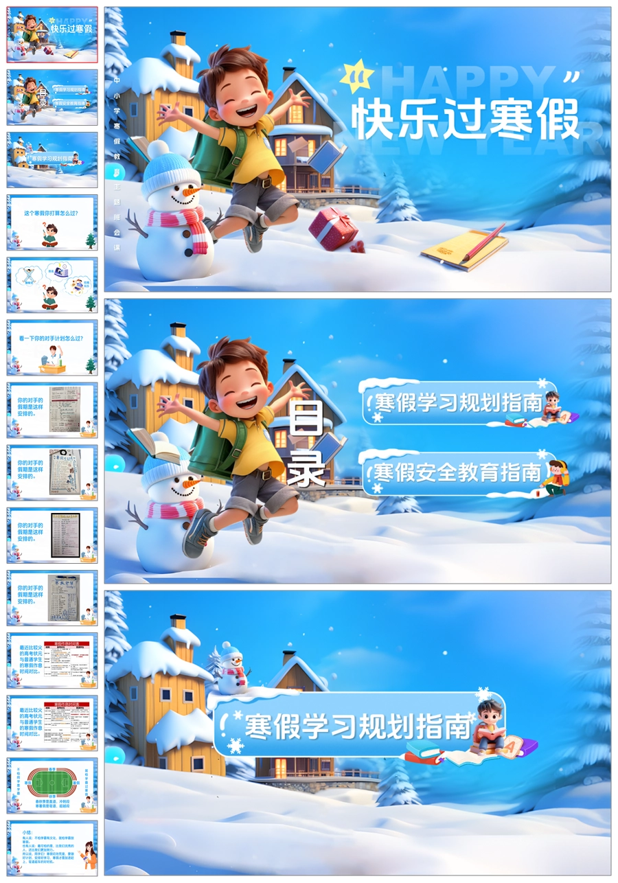 【5845】《快乐过寒假》中小学寒假教育寒假规划主题班会ppt课件+教案+时间规划表