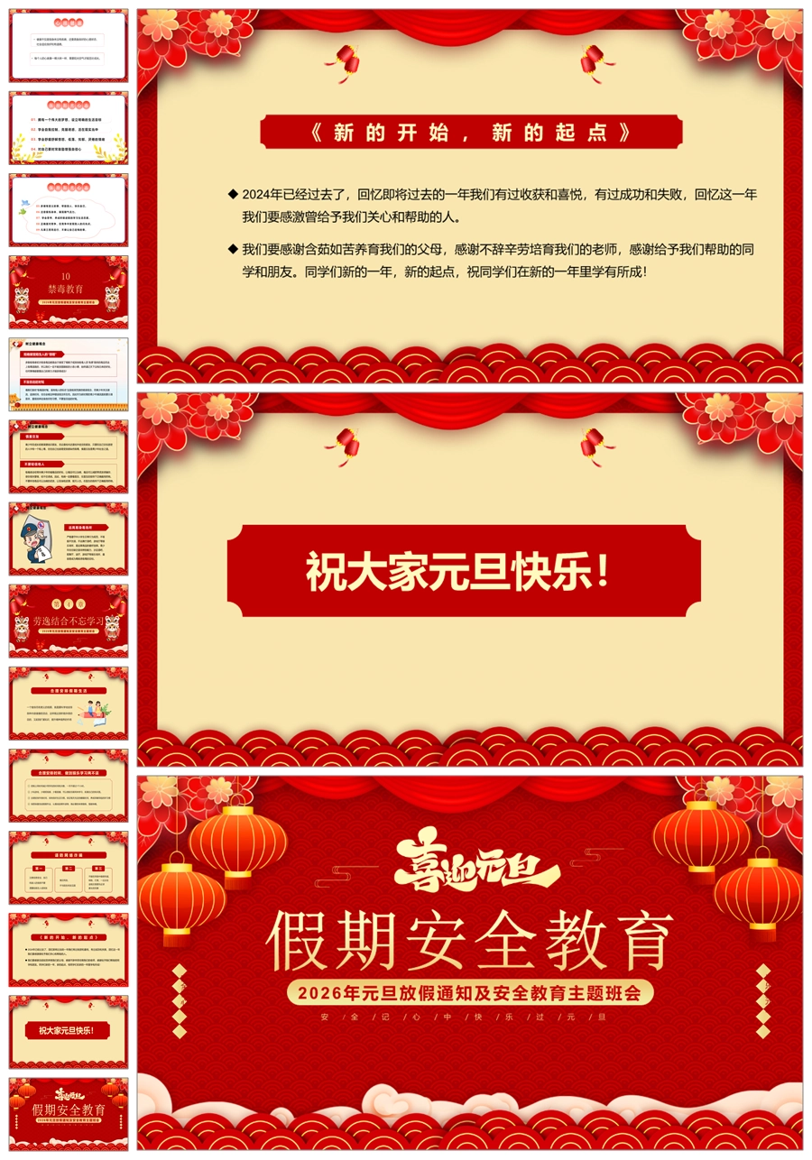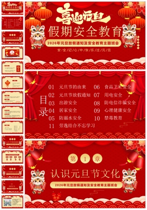首页 通用班会 【5846】《2026年元旦安全教育主题班会》ppt课件含(视频)+教案