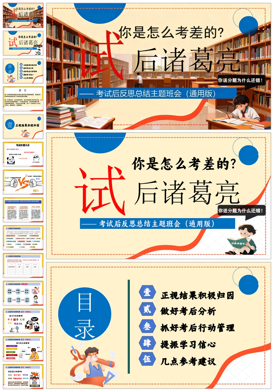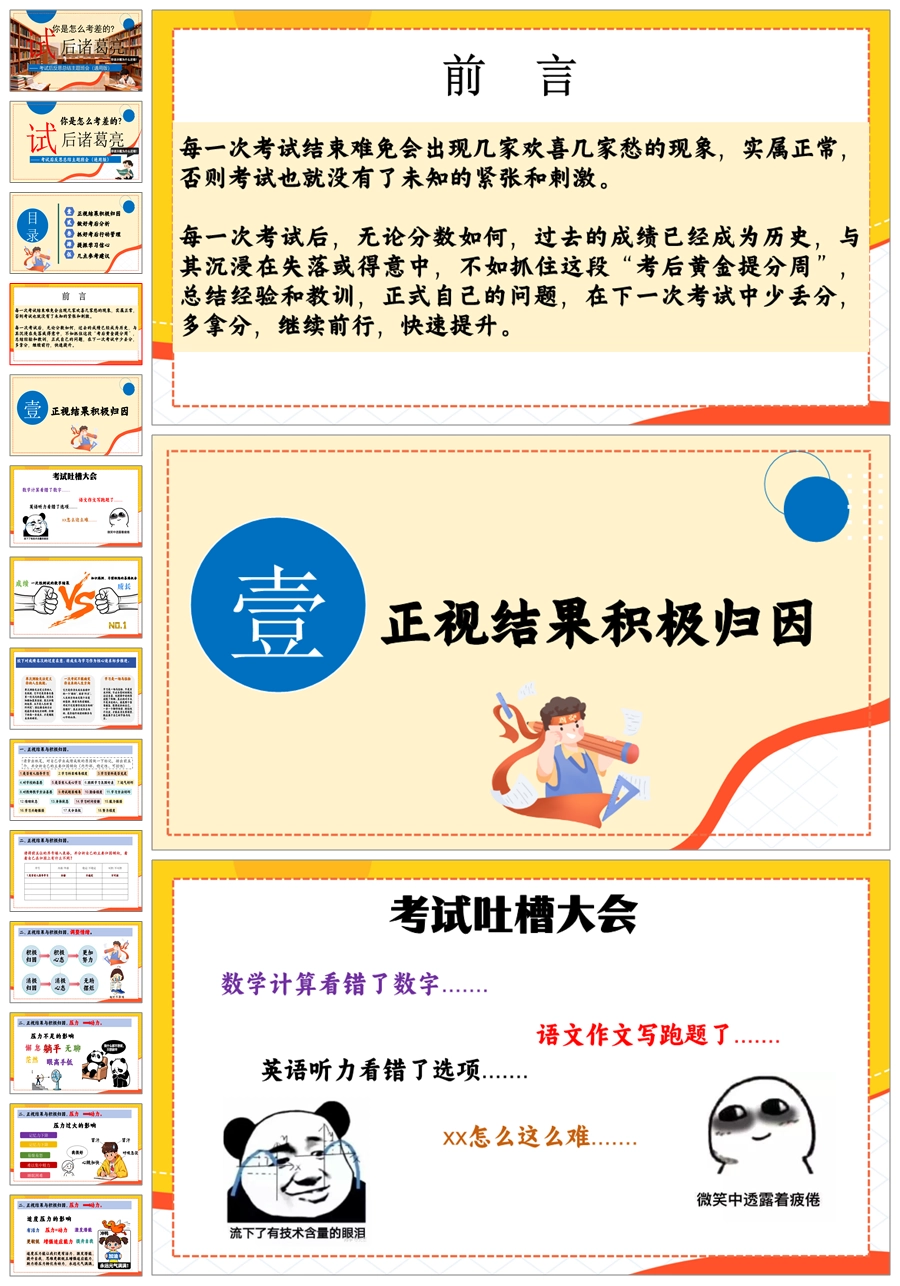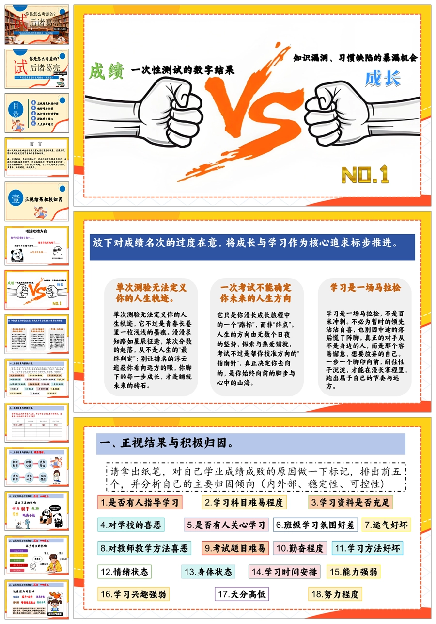 【5858】《试后诸葛亮》期中考试总结分析考试总结班会ppt课件+发言稿+视频
