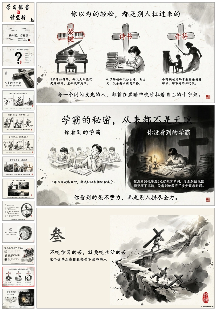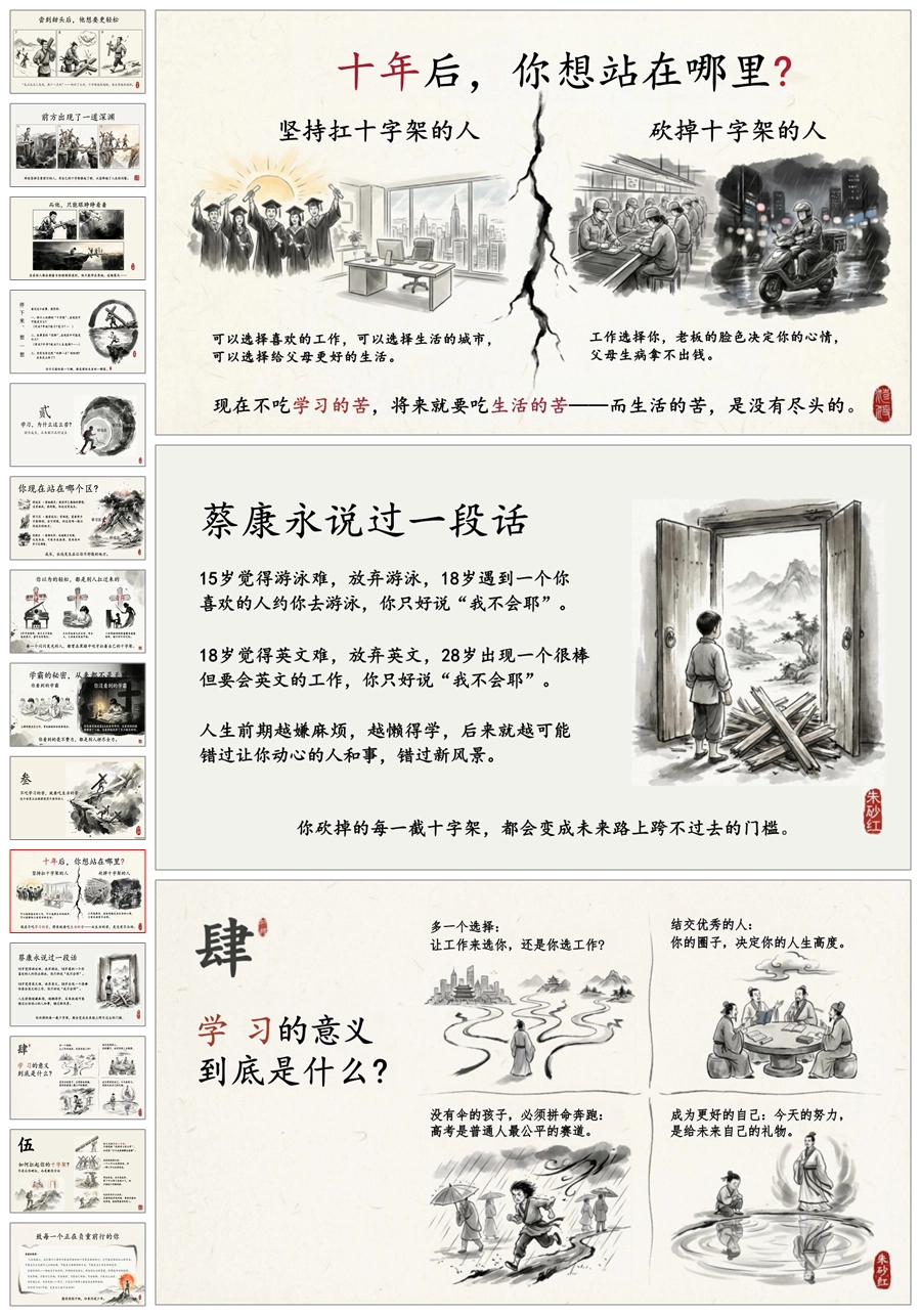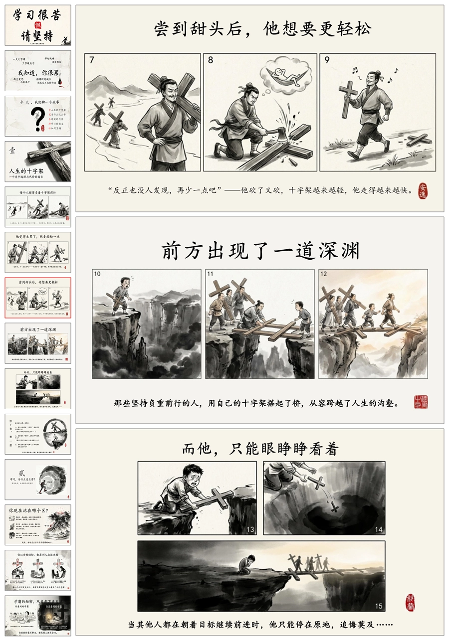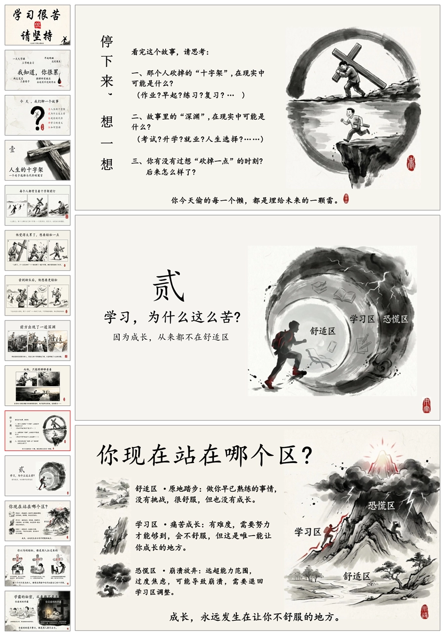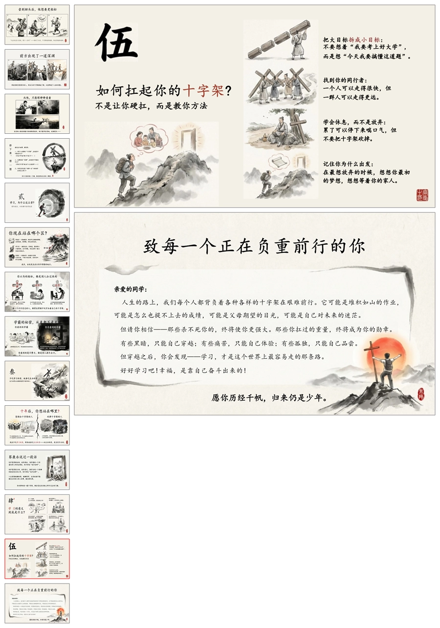 【5862】《学习很苦请坚持人生十字架》励志教育主题班会PPT课件+发言稿