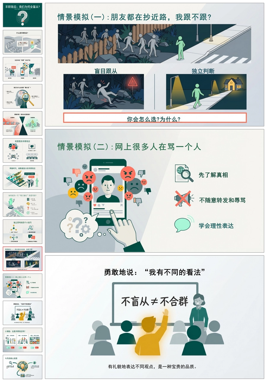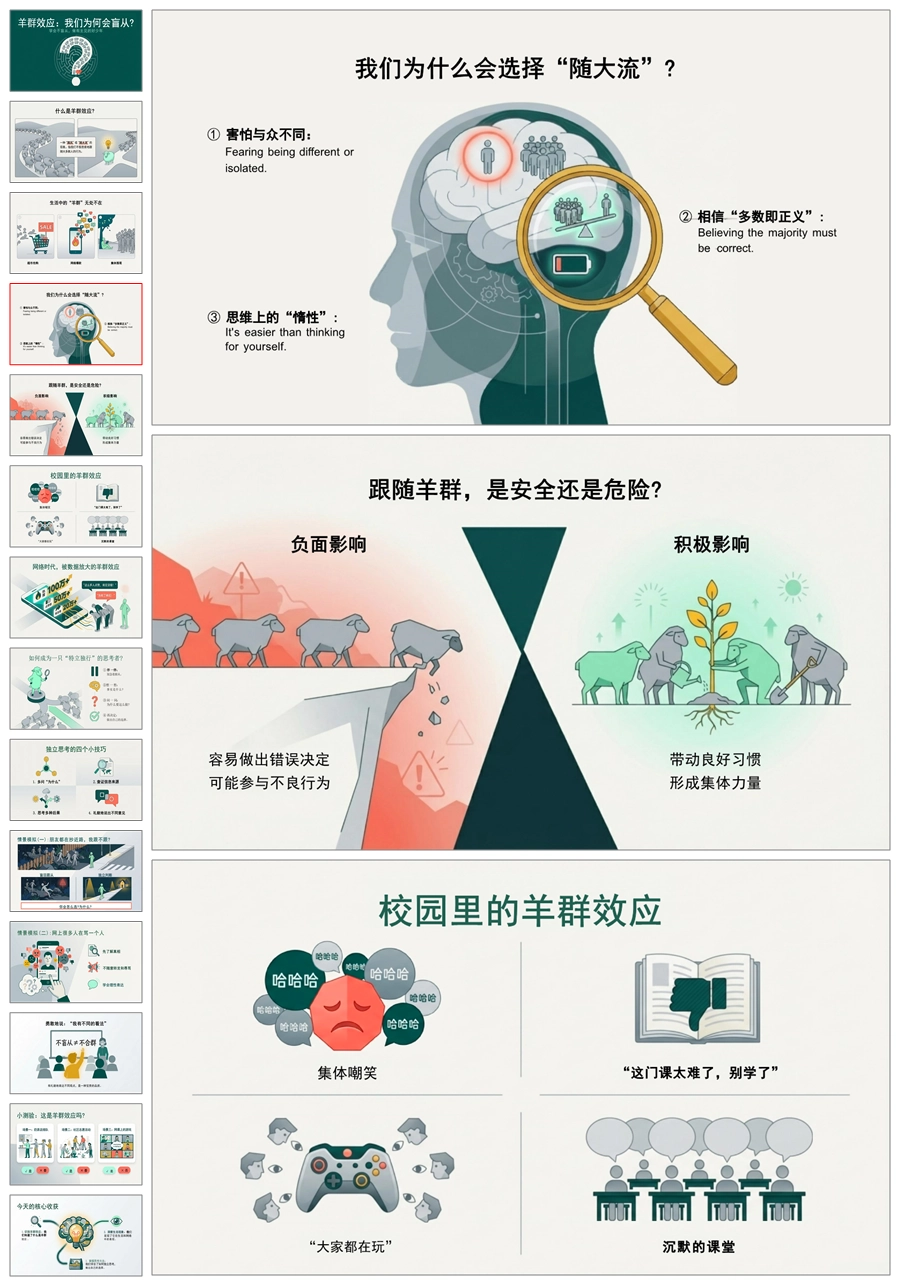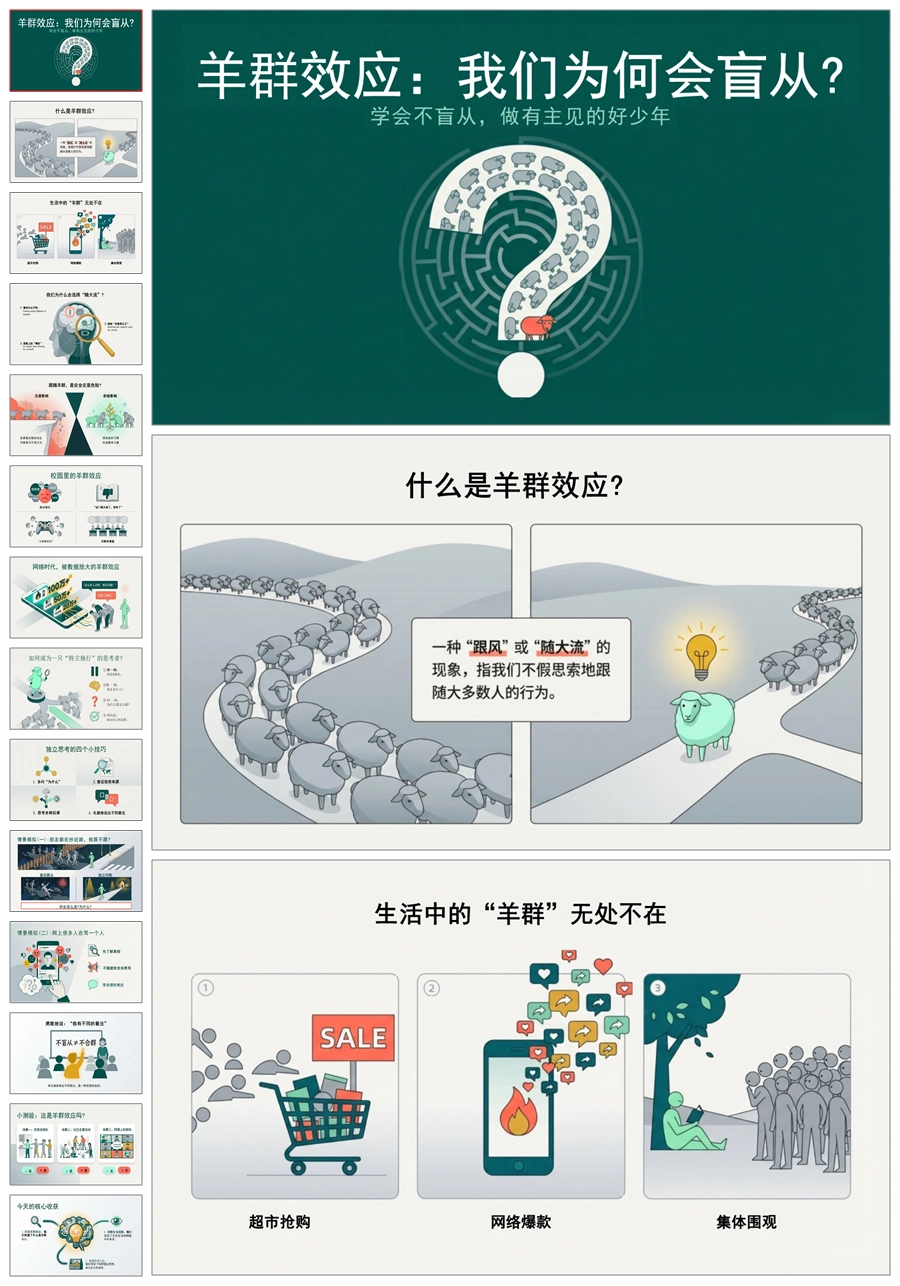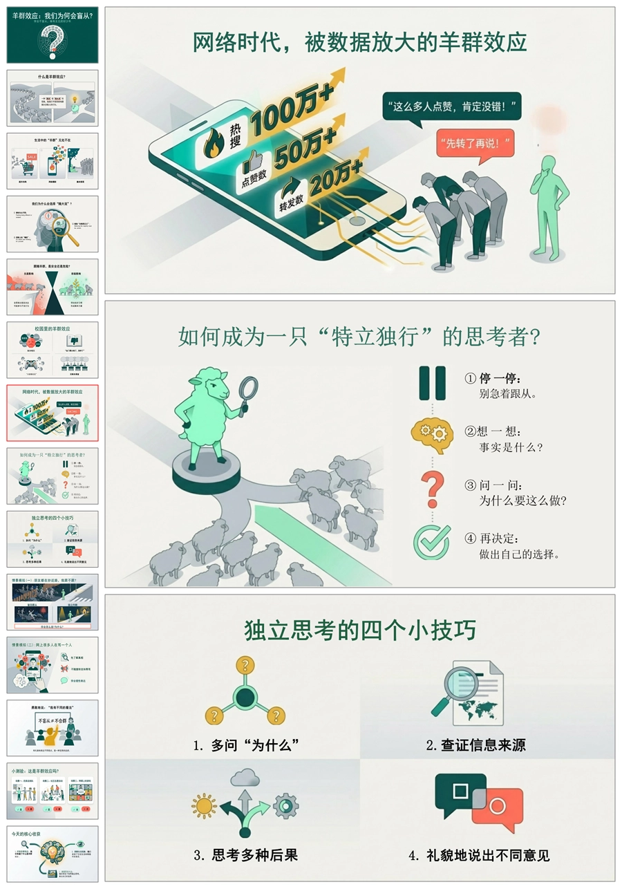 【5863】《羊群效应》主题班会PPT课件+3000字演讲稿