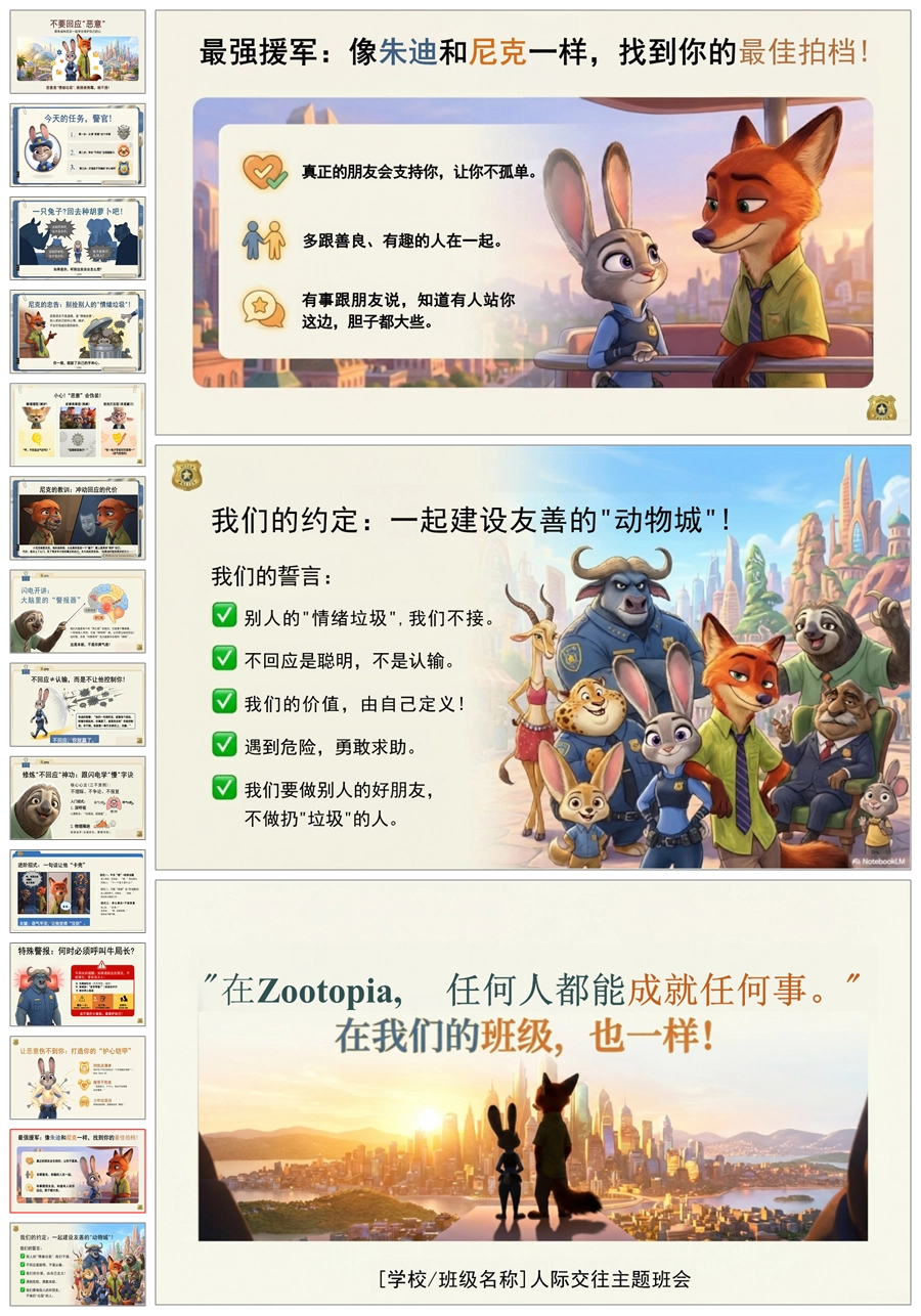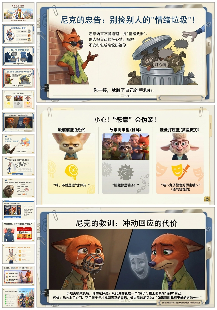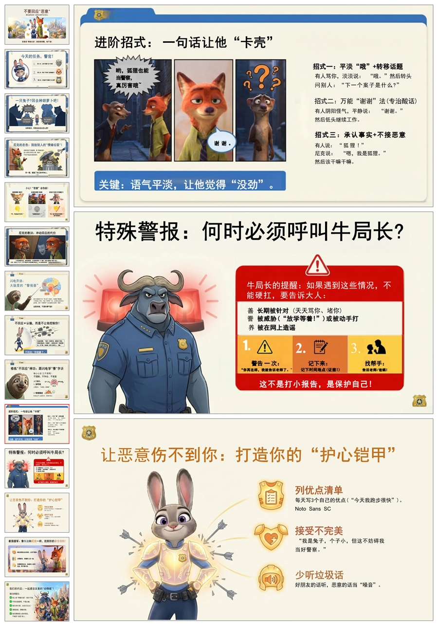 【5878】【通用】【人际交往】主题班会:不要回应恶意,打造你的护心铠甲(疯狂动物城)PPT课件+教案