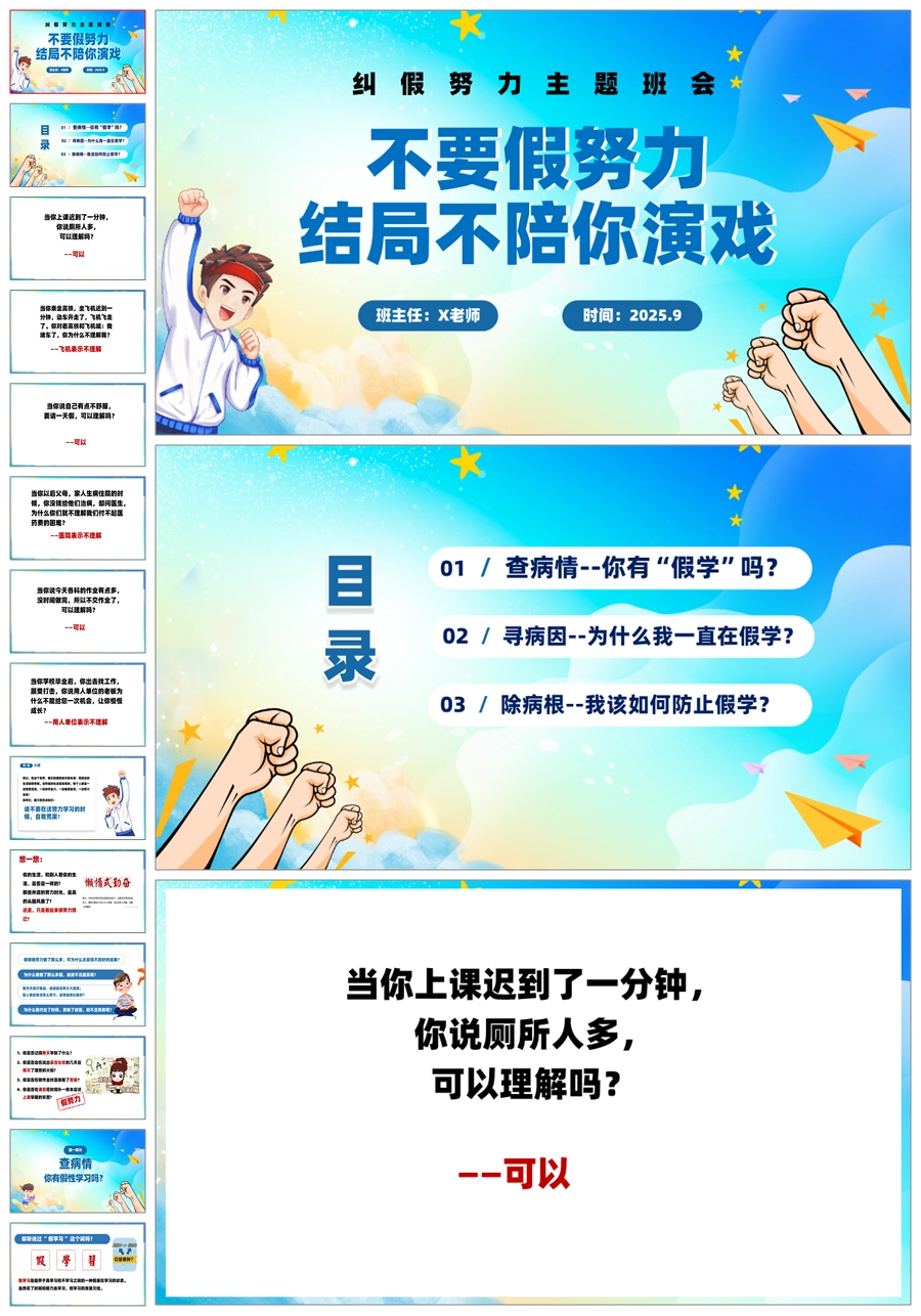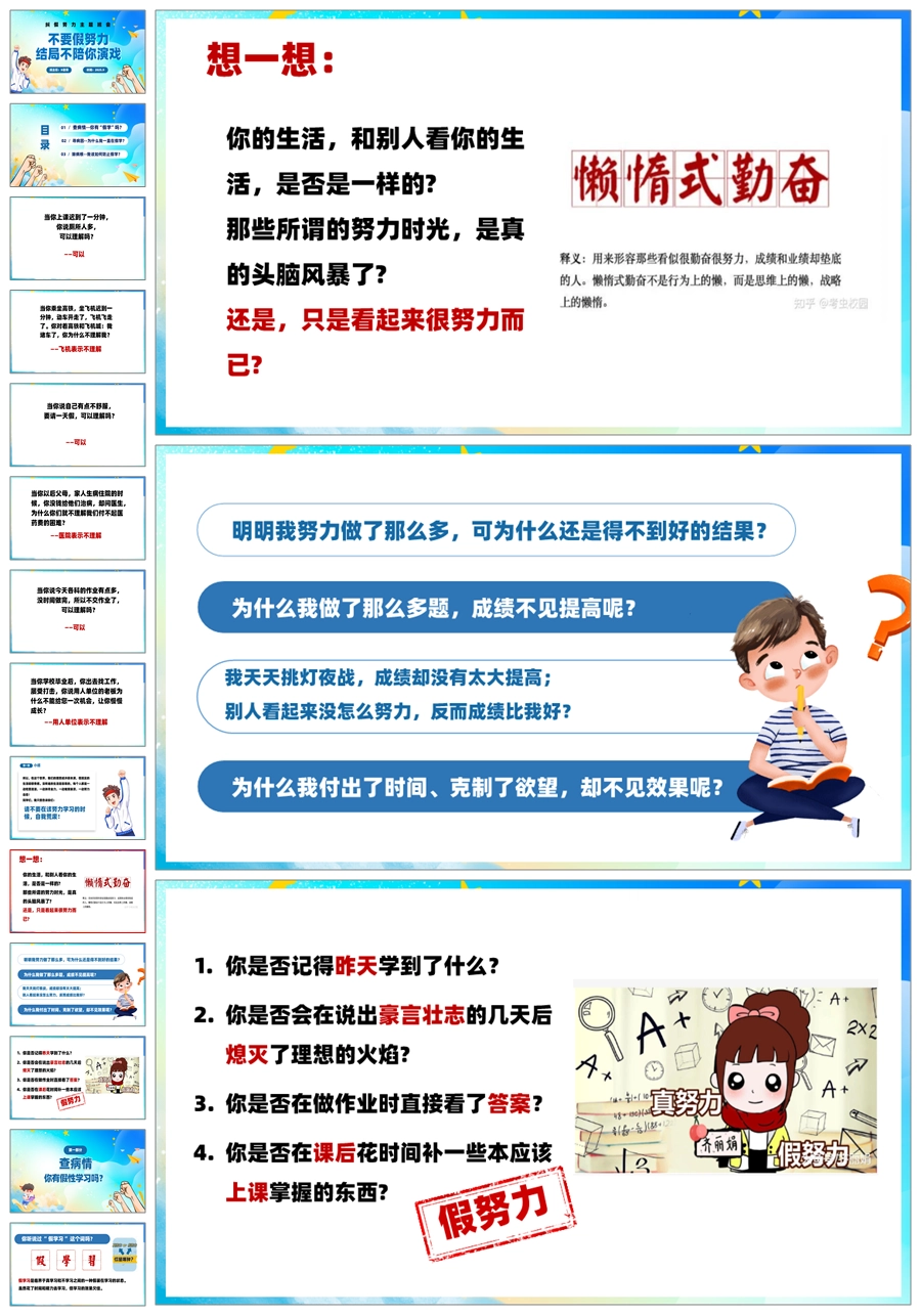 【5884】【主题班会】《不要假努力,结局不陪你演戏》PPT课件+教案