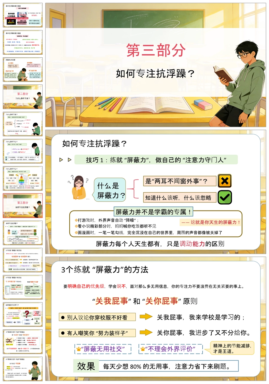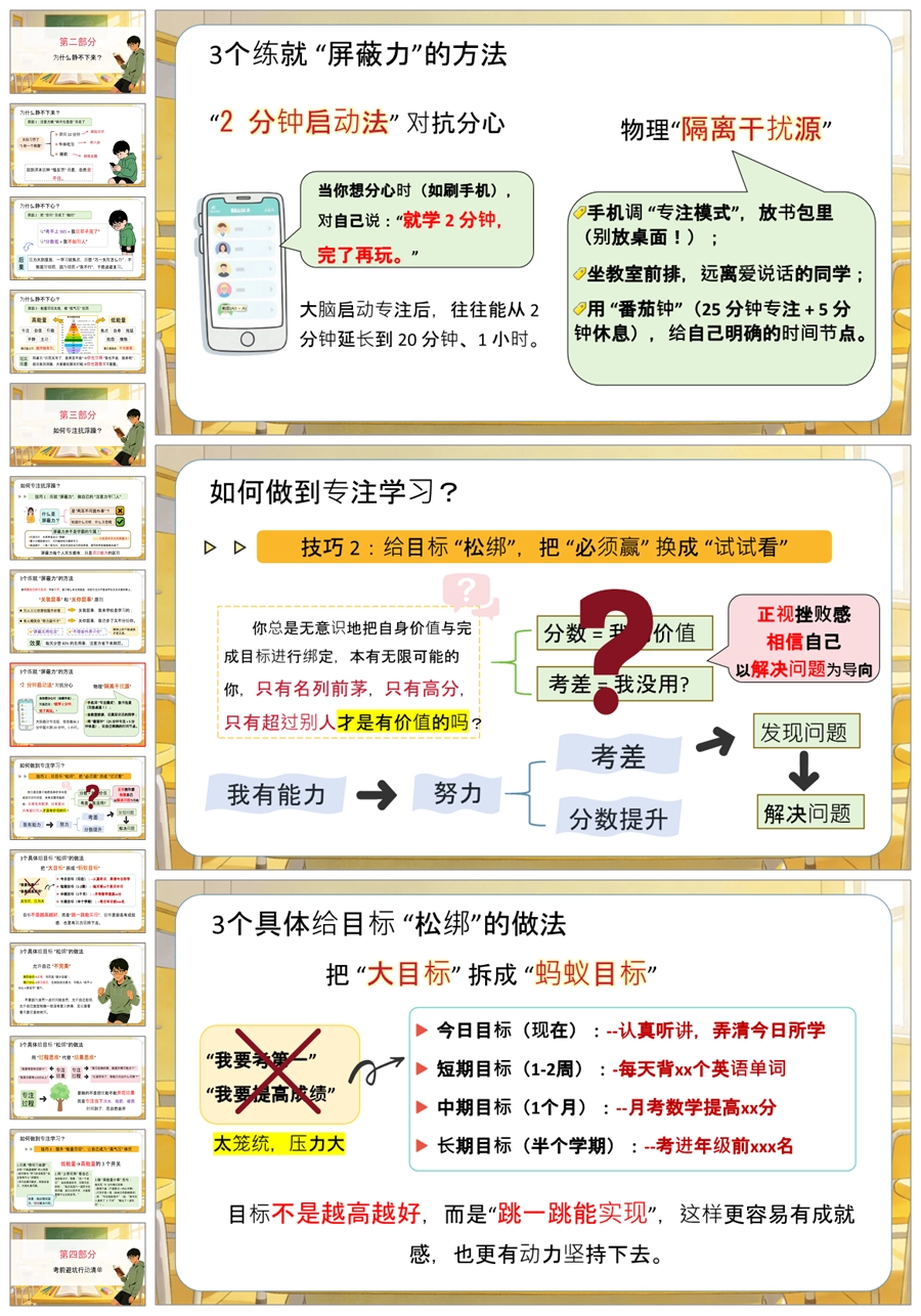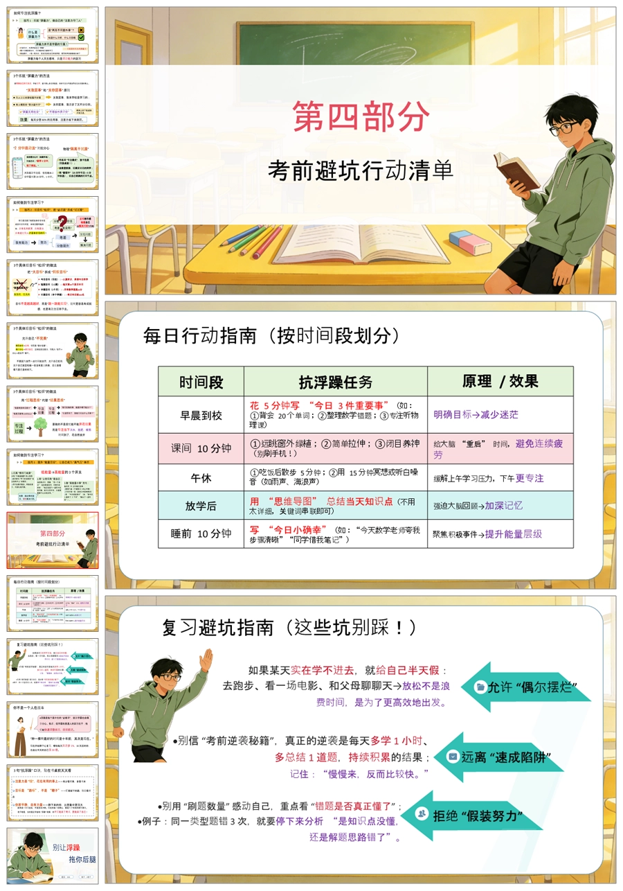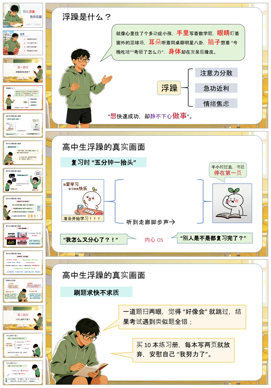 【5886】高中考前复习指导主题班会《别让浮躁拖你后腿》PPT课件+教案+发言稿+表格