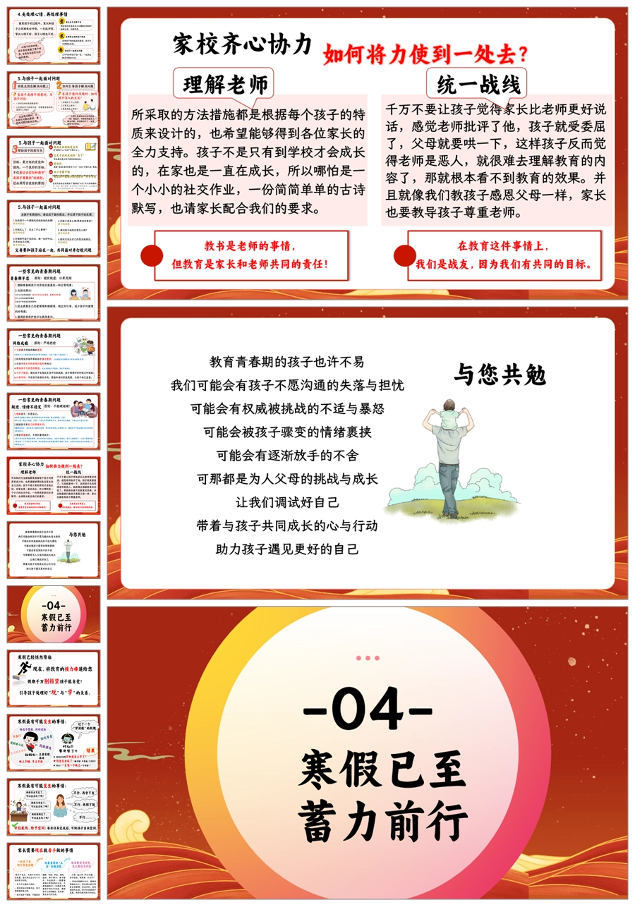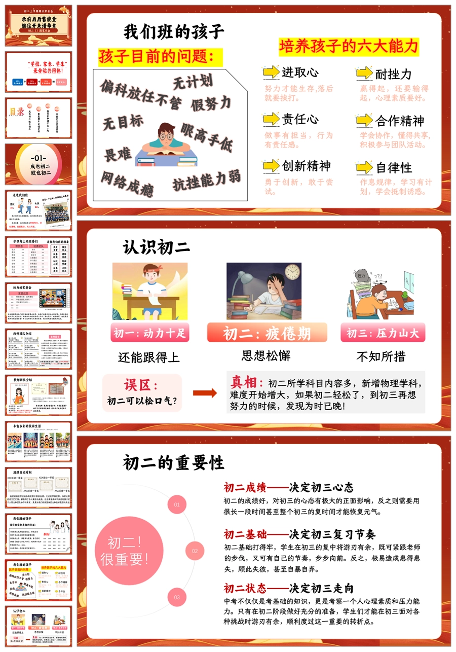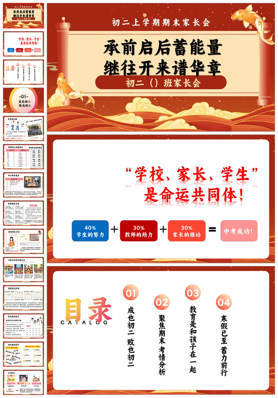 首页 中学家长会 【8616】【初二上期末家长会】《承前启后蓄能量,继往开来谱华章》八年级上学期期末家长会PPT课件+发言稿