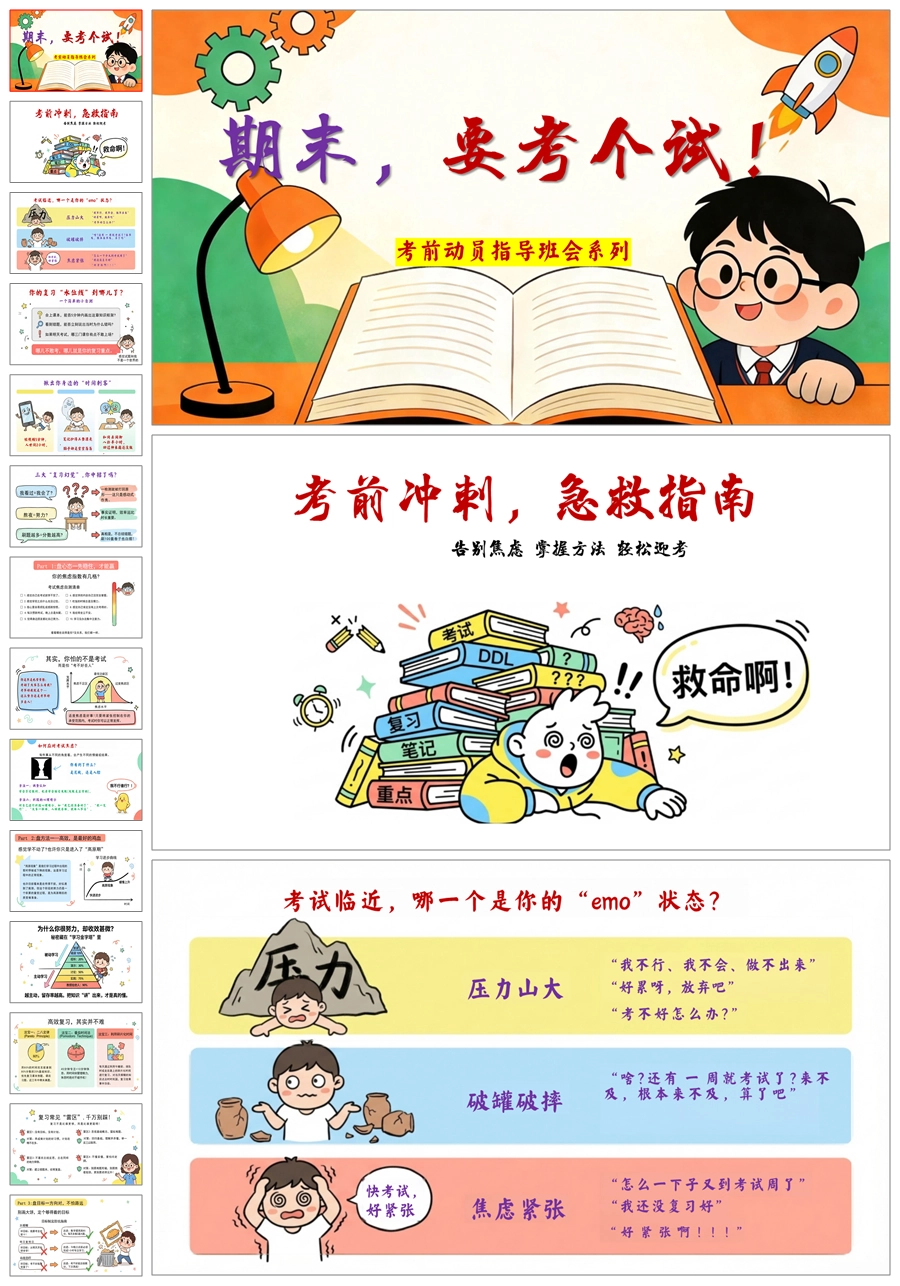 【8623】《期末要考个试!》期末考试动员主题班会ppt课件+教案