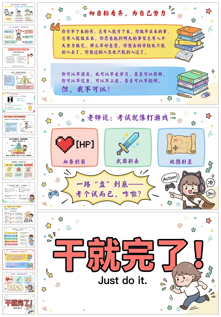 【5834】通用【期末总动员】《全力以赴备战期末》PPT课件+发言稿+挑战书