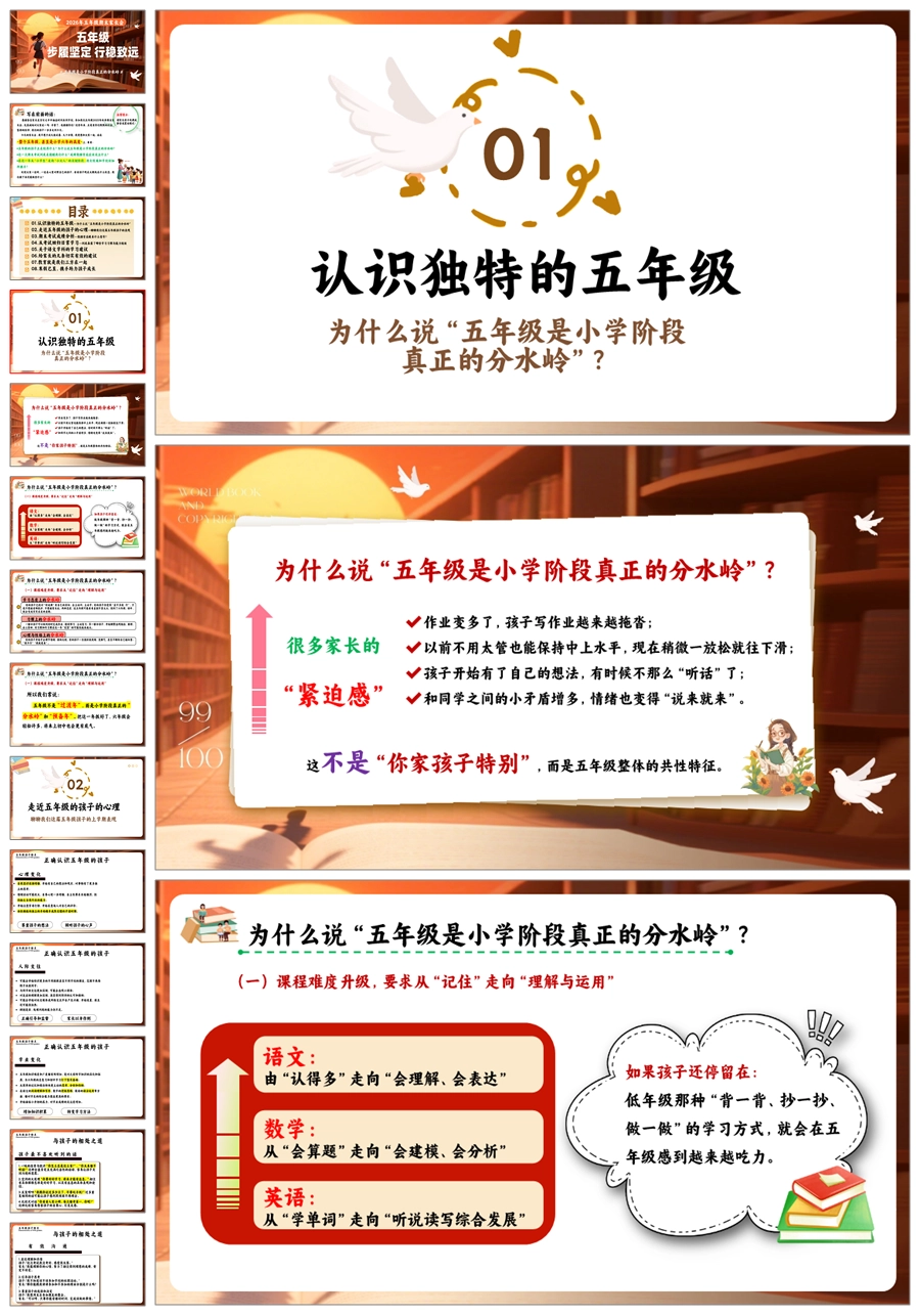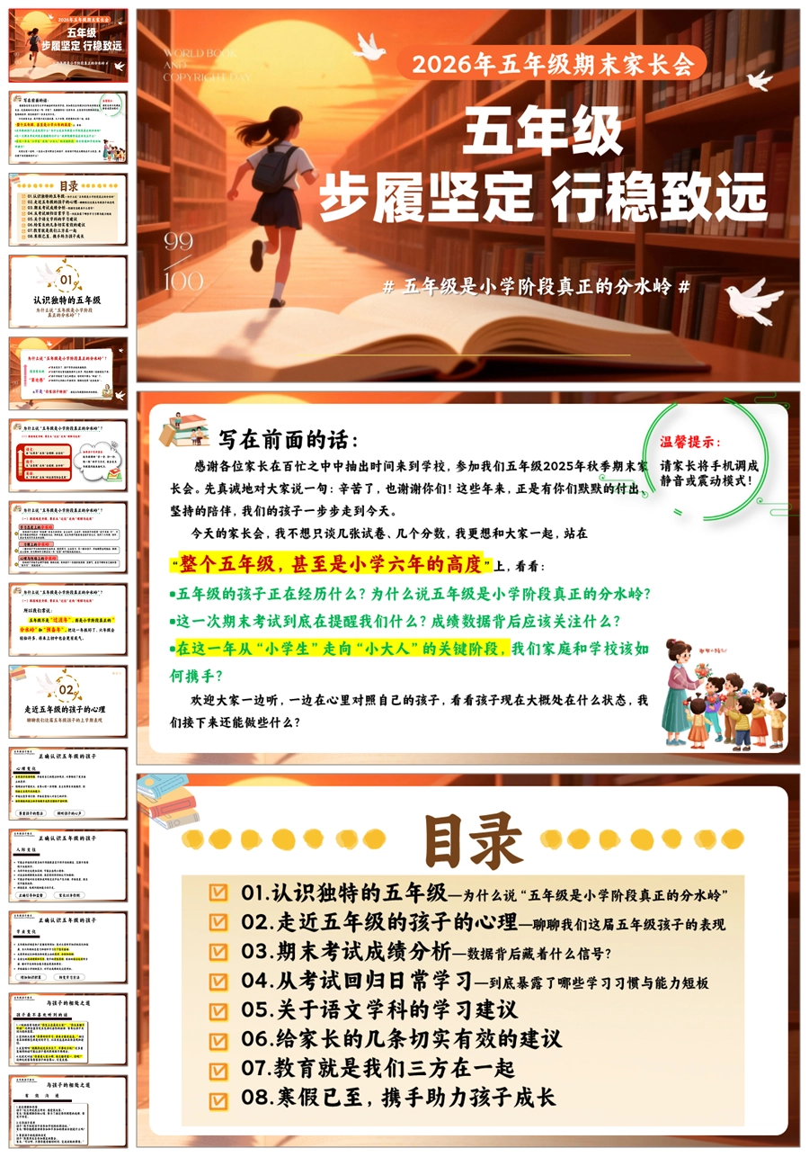 【8626】【五年级期末家长会】《步履坚定行稳致远》ppt课件+发言稿