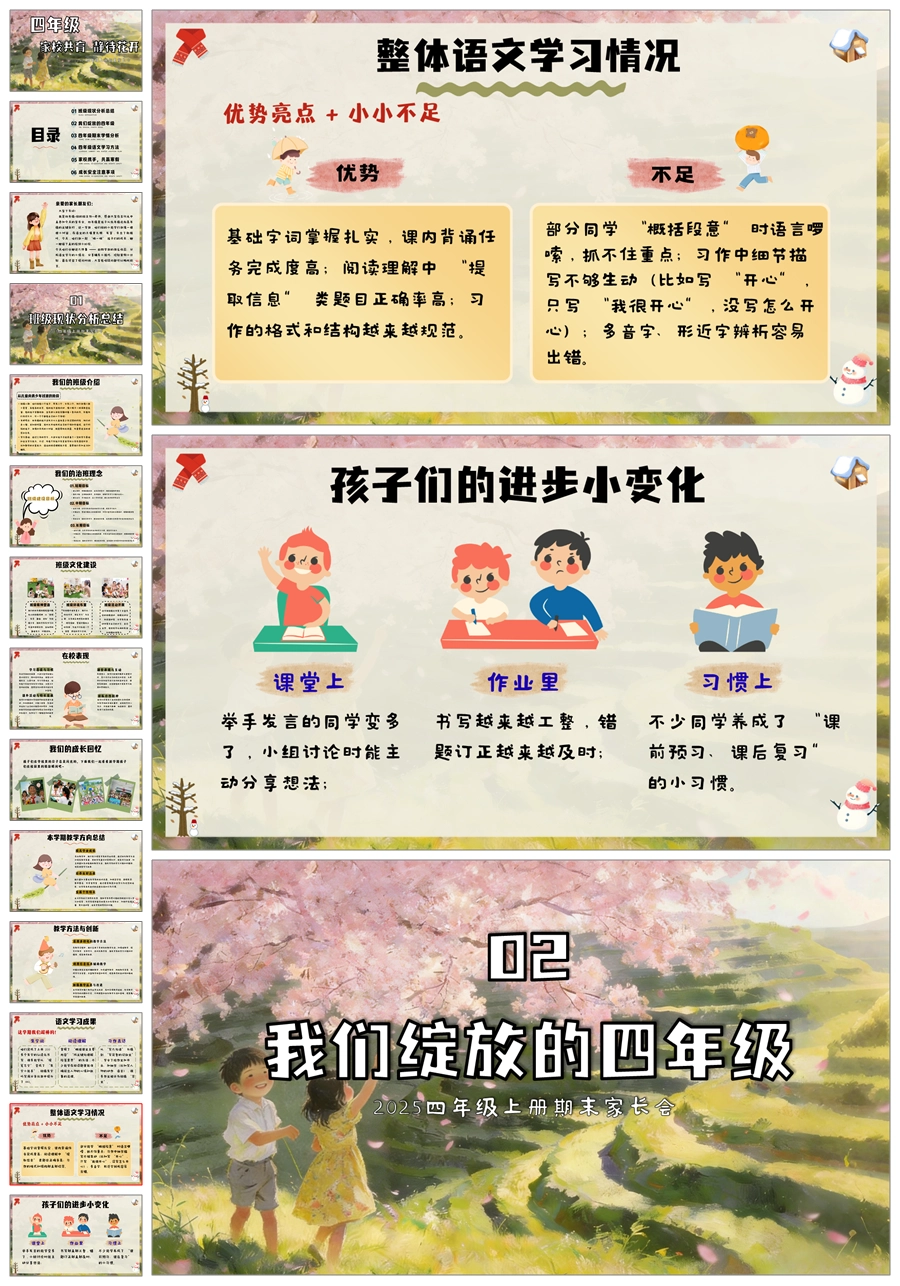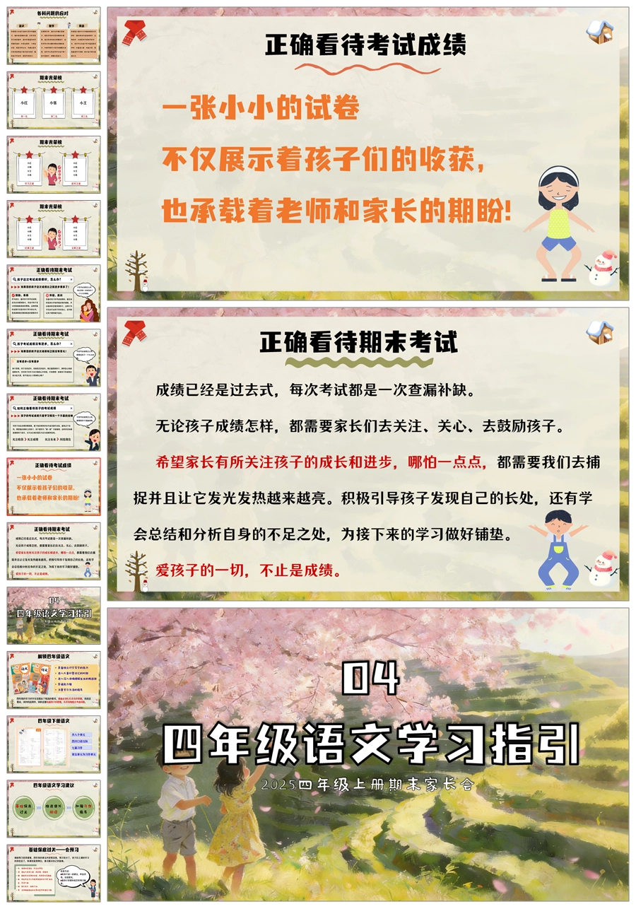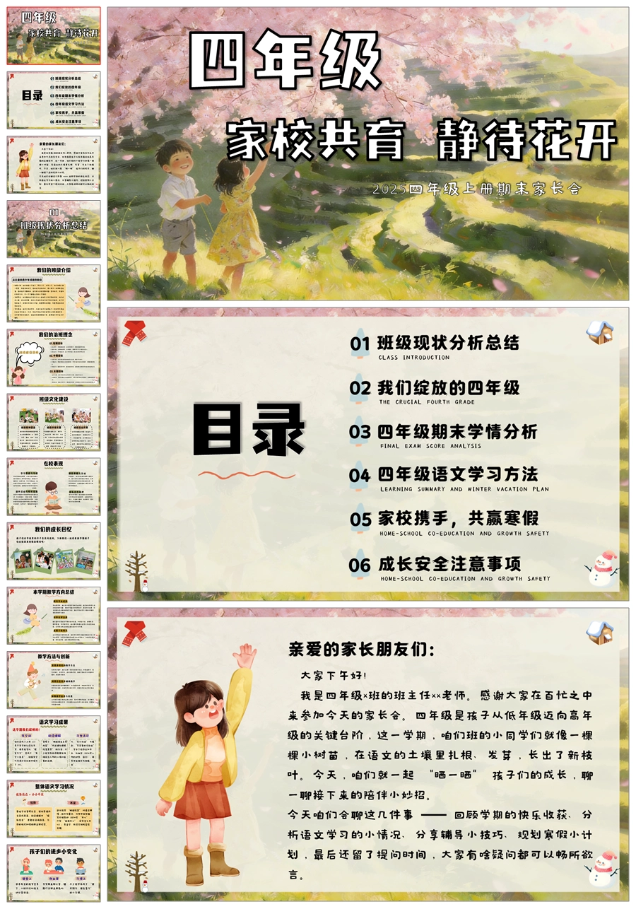 【8632】四上期末家长会《家校共育静待花开》四年级上学期期末家长会ppt课件+发言稿