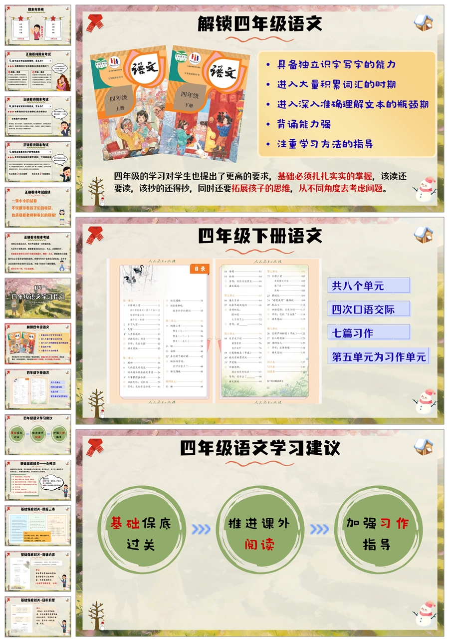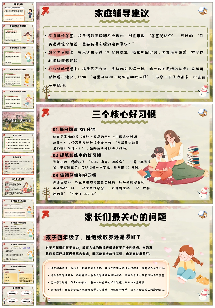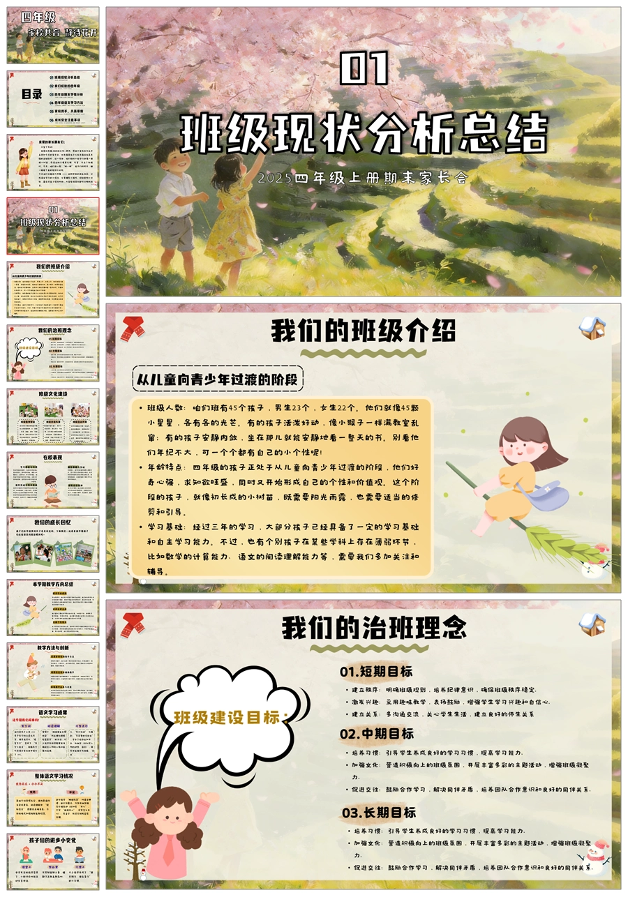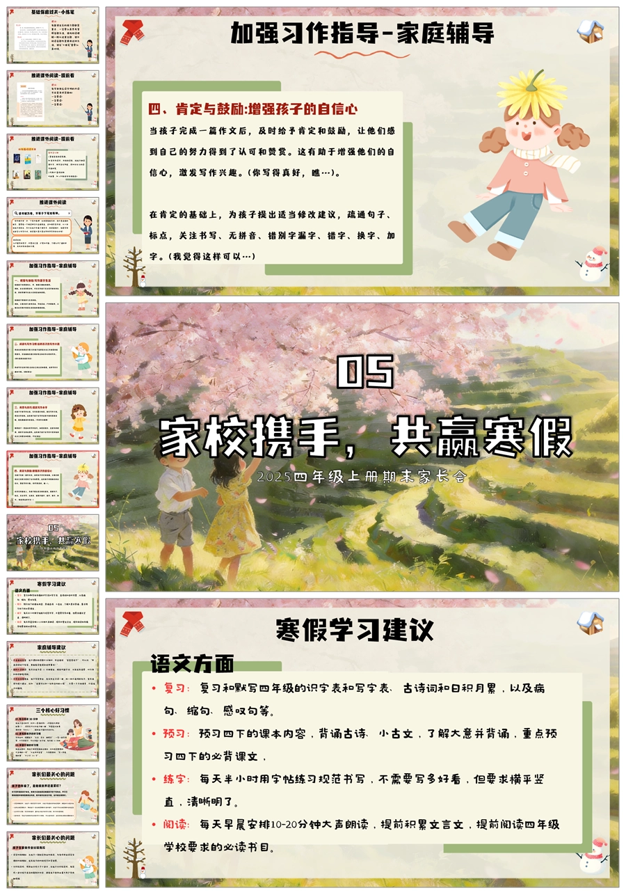 【8632】四上期末家长会《家校共育静待花开》四年级上学期期末家长会ppt课件+发言稿