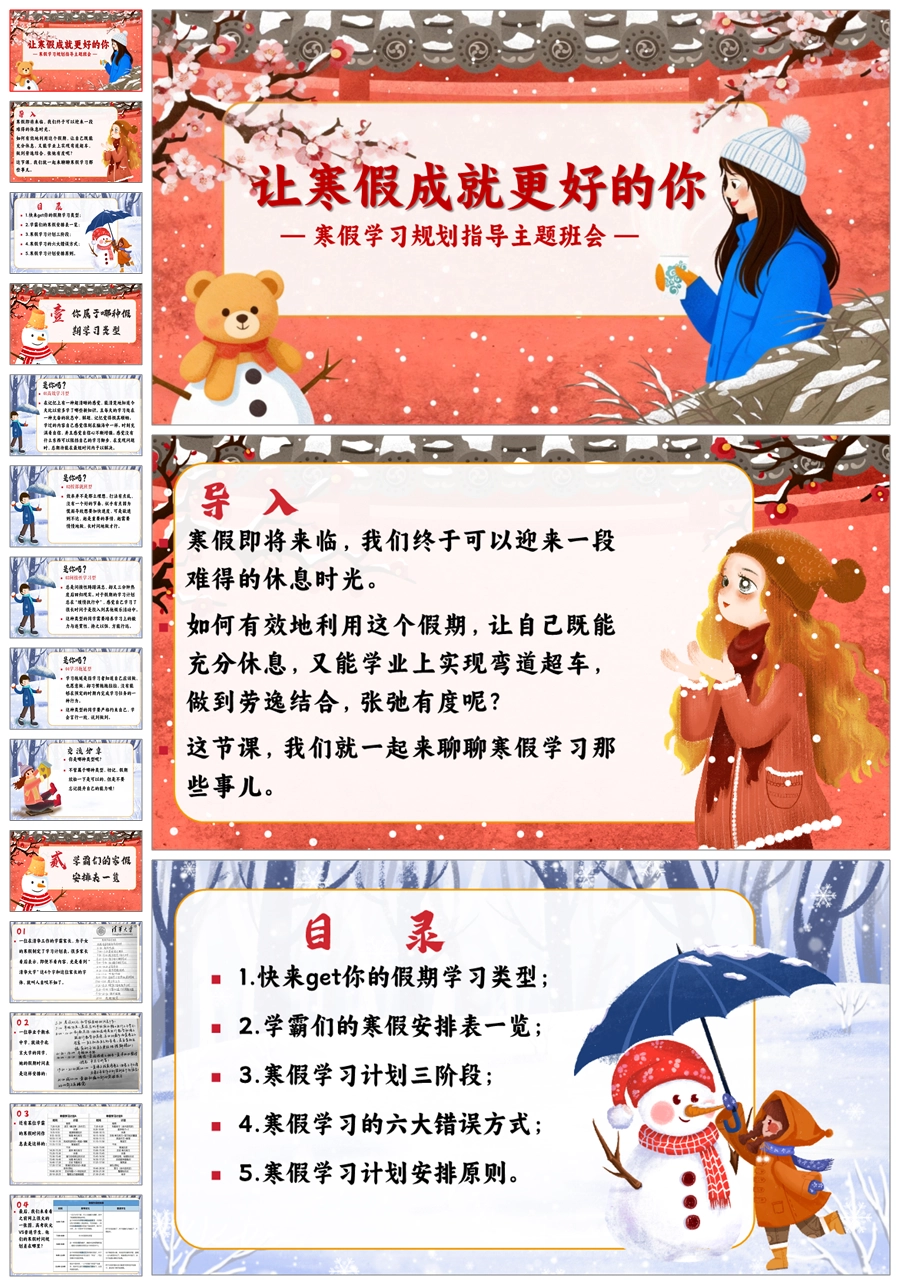 【8639】《让寒假成就更好的你》寒假规划主题班会ppt课件+教案