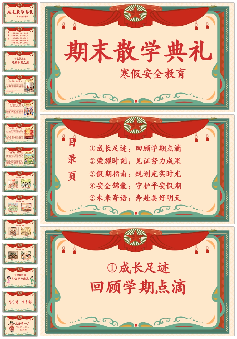 【8647】【小学散学典礼】寒假散学典礼安全教育PPT课件+发言稿