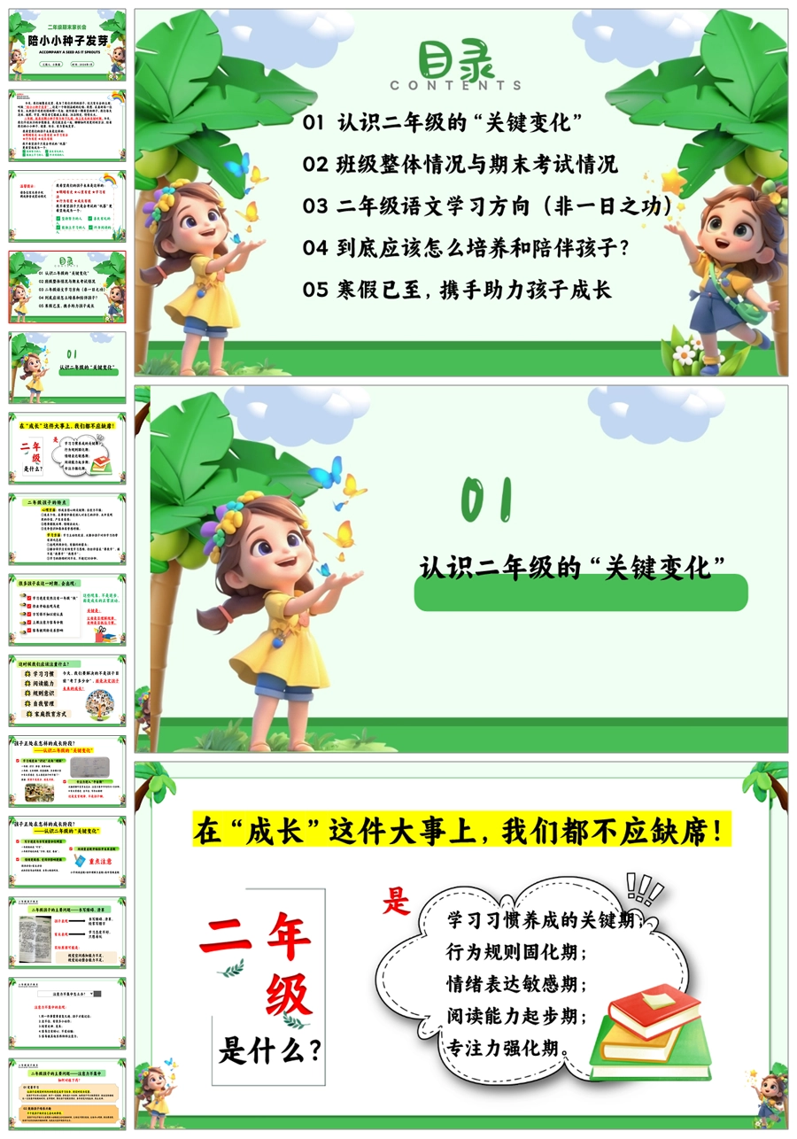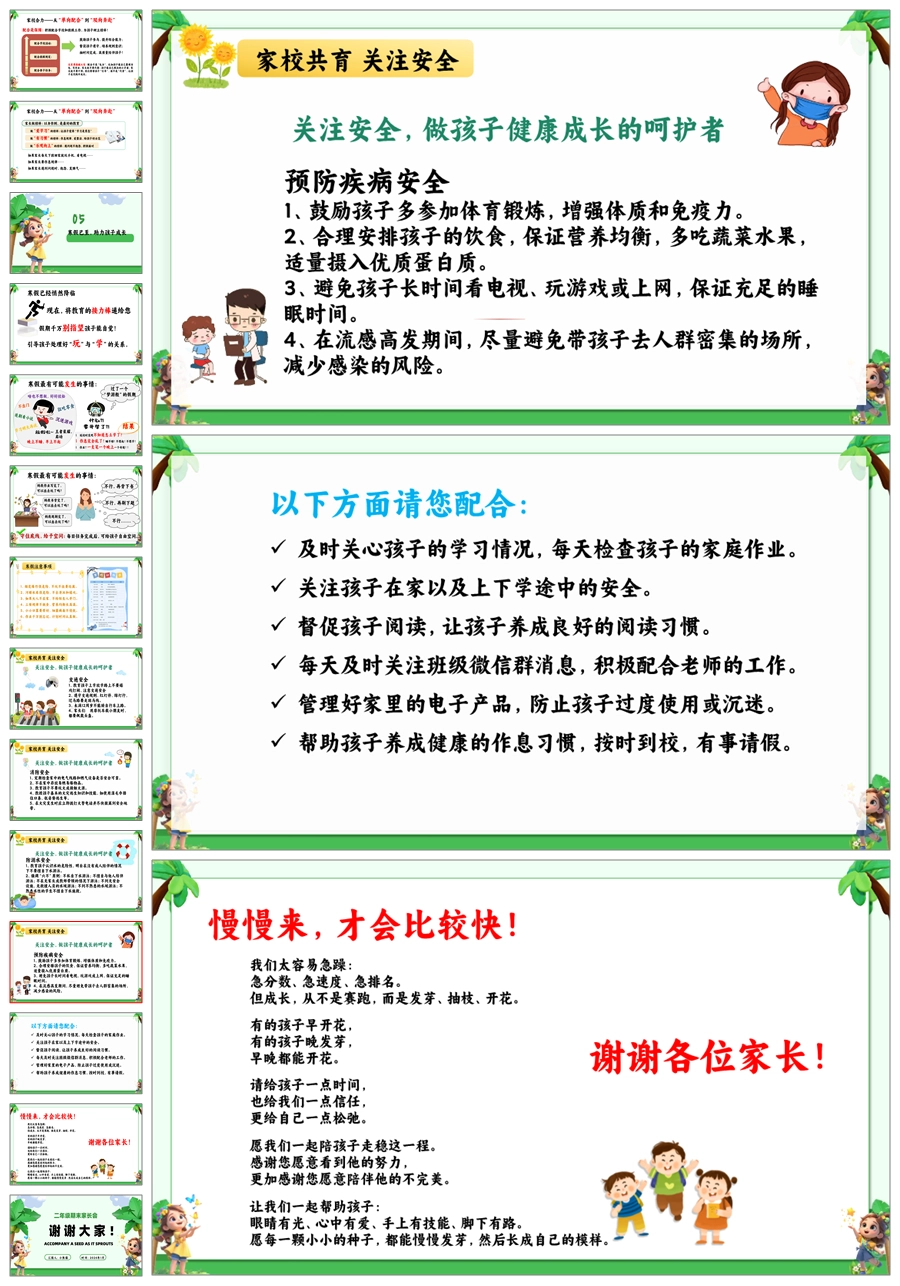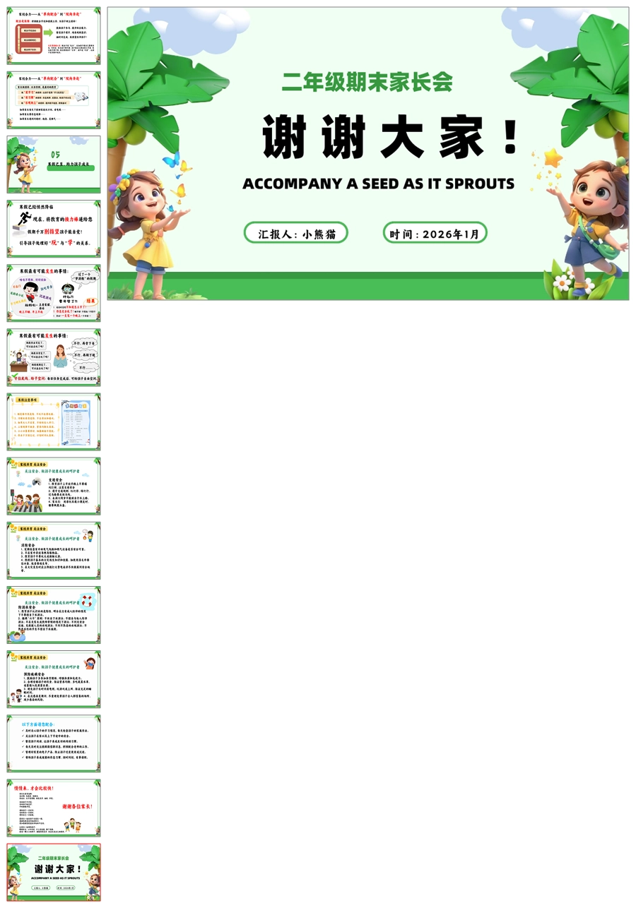 【5890】【二年级期末家长会】《陪小小种子发芽》PPT课件+发言稿