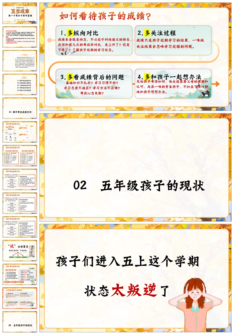首页 小学家长会 【5902】五上期中家长会《五步成章:做一个有分寸的守望者》五年级上学期期中家长会PPT课件+发言稿