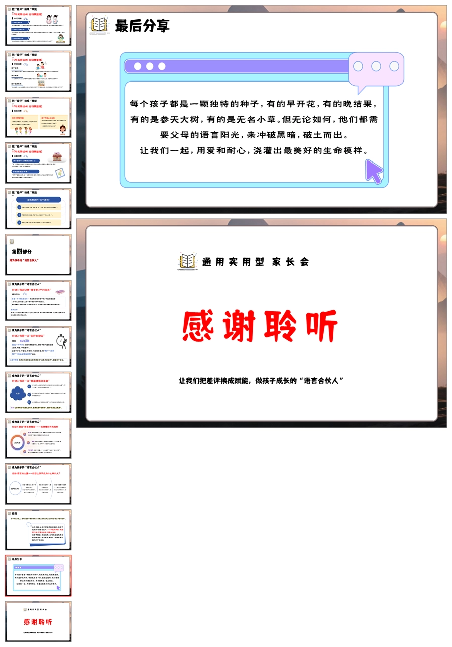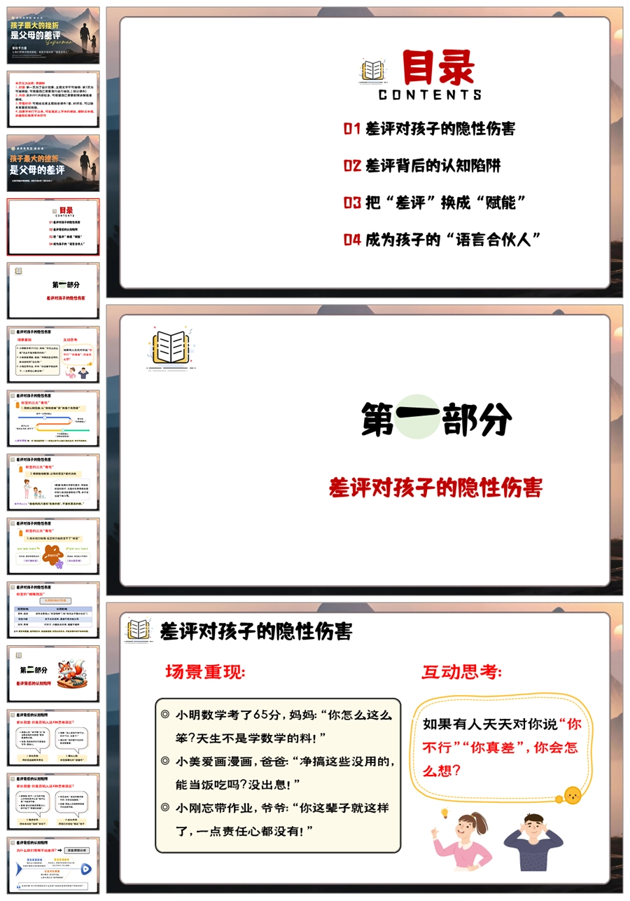 【5903】小学家长会通用《孩子最大的挫折,是父母的差评》PPT课件+发言稿